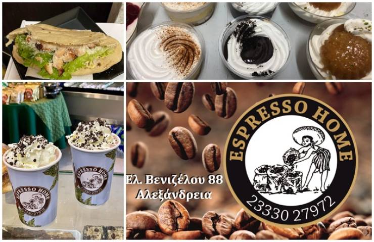 Το ESPRESSO HOME διαθέτει όλων των ειδών τις αρτολιχουδιές, χειροποίητα δημιουργήματα, εντελώς ξεχωριστά, με προϊόντα εκλεκτά που μπορείς να απολαύσεις επί τόπου, σε πρωτότυπες ιδέες που έχουν σχεδιάσει για σένα! Μην παραλείψετε να δοκιμάσετε τις πίτες τους. Χωριάτικες και λαχταριστές όπως τις φτιάχνει πιθανά και η δική σας μαμά!