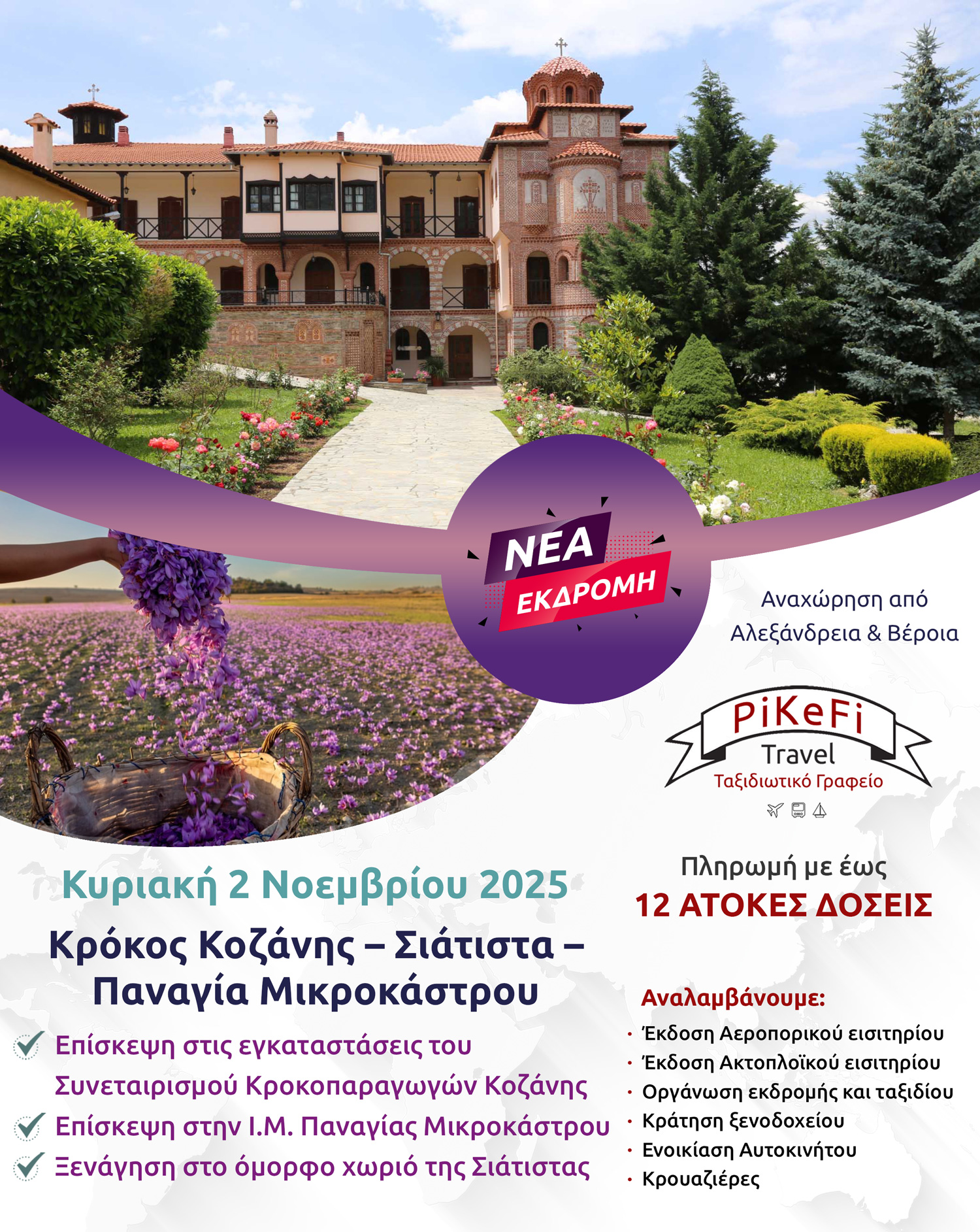 Πληροφορίες για την εκδρομή - Κρατήσεις: https://www.pikefi-travel.gr/.../krokos-kozanis-siatista.../