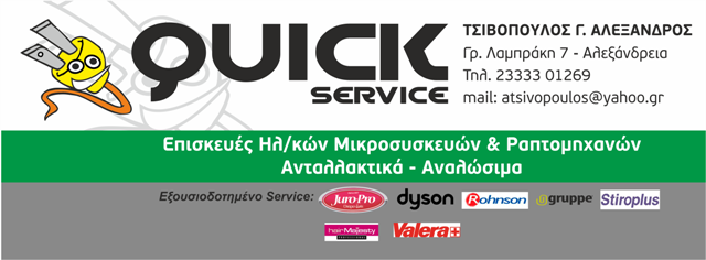 Η QUICK SERVICE θα αναλάβει την επισκευή της ηλεκτρικής σας συσκευής στον ελάχιστο δυνατό χρόνο.