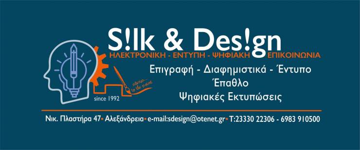 Η Τεχνική Διαφημιστική Silk & Design, δραστηριοποιείται στο χώρο της επικοινωνίας, της διαφήμισης, των εκτυπώσεων και των πολυμέσων από το 1992 με ισχυρή εικόνα και διαχρονική αξία παρέχοντας προϊόντα με υψηλές προδιαγραφές και στρατηγική σκέψη.