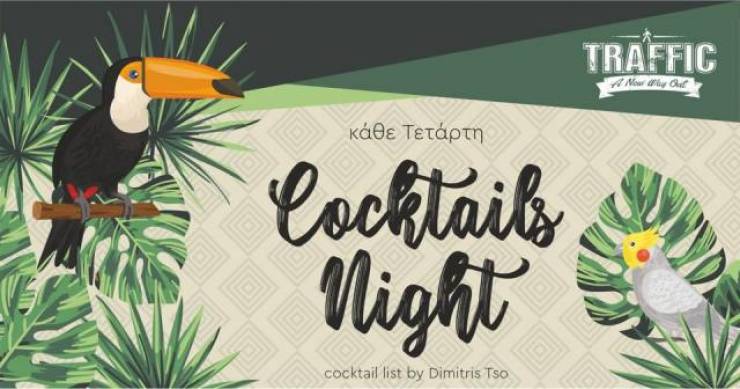 Κάθε Τετάρτη το Τraffic σας ετοιμάζει και σας προσφέρει μοναδικά cocktails μόνο με 5€