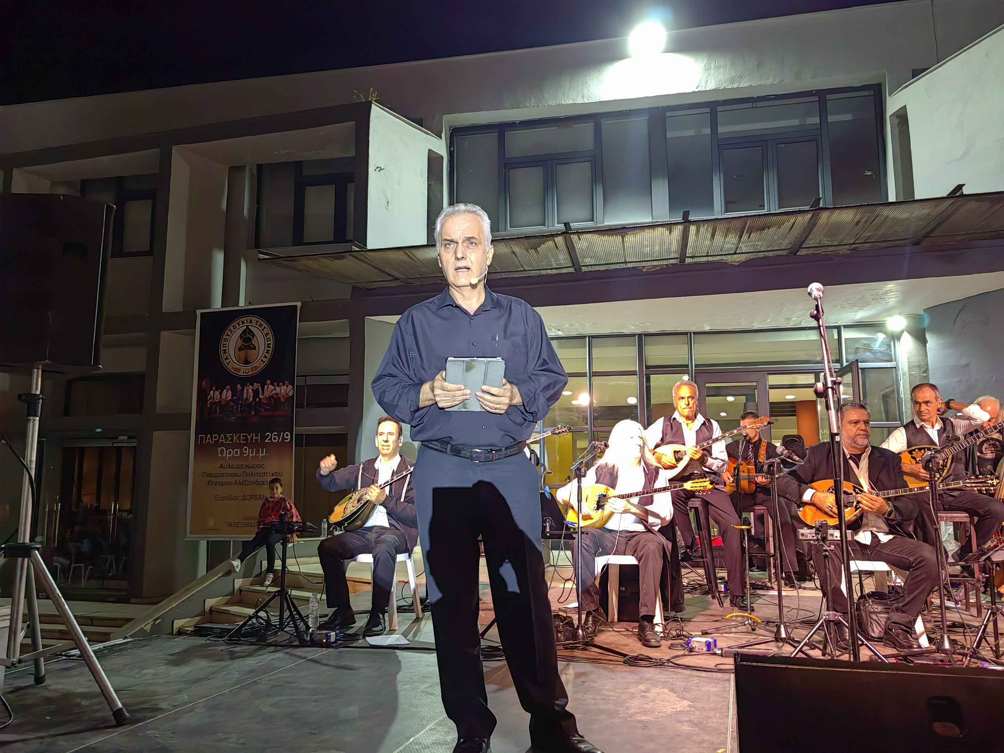 Μια μουσική παράσταση αφιερωμένη στο λαϊκό και ρεμπέτικο τραγούδι παρουσίασε την Παρασκευή 26 Σεπτεμβρίου στον αύλειο χώρο του Πνευματικού Πολιτιστικού Κέντρου Αλεξάνδρειας και ώρα 21.00 μία ομάδα μουσικών από τη Θεσσαλονίκη με τίτλο “Τα 10 Μπουζούκια της Δόμνας” μέσα από τον πλούσιο ήχο 10 μπουζουκιών που βρέθηκαν επί σκηνής.