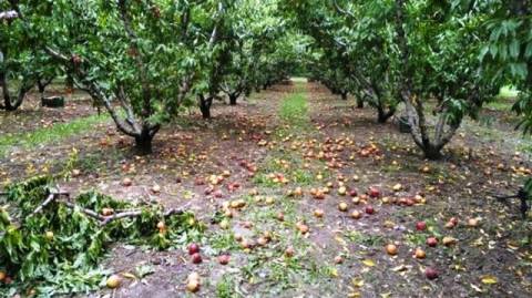 Τη χαριστική βολή στην ήδη υπάρχουσα δύσκολη κατάσταση ήρθαν να δώσουν οι προ ημερών έντονες βροχοπτώσεις όπου στον κάμπο έπεσαν 25-30 εκατοστά βροχής μέσα σε λίγη ώρα με αποτέλεσμα τα ήδη ευαίσθητα ροδάκινα -λόγω της κακής καρπόδεσης- να αρχίζουν να σαπίζουν και να πέφτουν από τα δέντρα, δημιουργώντας ένα στρώμα στο έδαφος με τους παραγωγούς γεμάτους απόγνωση να τρέχουν να ραντίζουν προκειμένου να σώσουν τους εναπομείναντες καρπούς από τη μονίλια και άλλους παθογόνους μύκητες.