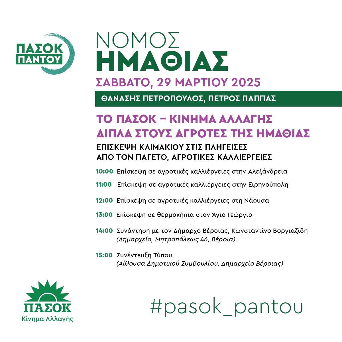 Εν όψει της έκθεσης Agrotica, που θα λάβει χώρα από 1 έως 4 Φεβρουαρίου 2024 στη Θεσσαλονίκη αλλά και των αγροτικών κινητοποιήσεων, ο πρόεδρος του ΠΑΣΟΚ – Κινήματος Αλλαγής ,Νίκος Ανδρουλάκης, θα πραγματοποιήσει επίσκεψη στην Ημαθία.