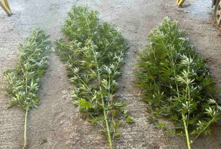 Ενώ στον αύλειο χώρο της οικοδομής εντοπίστηκαν 3 δενδρύλλια κάνναβης, ύψους από 1,5 έως 3 μέτρα, τα οποία εκριζώθηκαν και κατασχέθηκαν.
