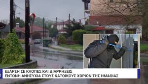 Έντονη ανησυχία έχει προκαλέσει στους κατοίκους των χωριών της Ημαθίας, η μεγάλη έξαρση σε κλοπές και διαρρήξεις το τελευταίο διάστημα. Στο στόχαστρο των κακοποιών έχουν μπει σπίτια, καταστήματα αλλά και αποθήκες με αγροτικό εξοπλισμό.
