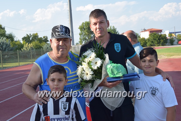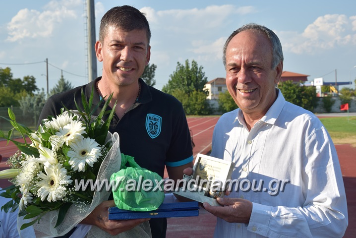 Ιδιαίτερα πρόσχαρος και χωρίς να αρνηθεί σε κανέναν, φωτογραφήθηκε με όσους το ζήτησαν, ενώ εκτός της τιμητικής πλακέτας, δέχτηκε και δώρο μια φανέλα από τον Σύνδεσμο Φιλάθλων ΠΑΟΚ Αλεξάνδρειας, εκπρόσωποι του οποίου βρέθηκαν σήμερα στο ΔΑΚ Αλεξάνδρειας.