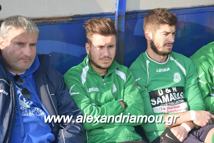 Η Α.Ε. Αλεξάνδρειας μπήκε δυναμικά στο παιχνίδι με φάουλ του Καφέ στο 10΄ και στη συνέχεια στο 28΄ με εναλλαγή της μπάλας μεταξύ Καφέ και Αβραμόπουλου κατάφερε ο τελευταίος να σημειώσει το πρώτο γκολ με ψηλοκρεμαστό σουτ και να παραβιάσει τα δίχτυα του Μακροχωρίου.