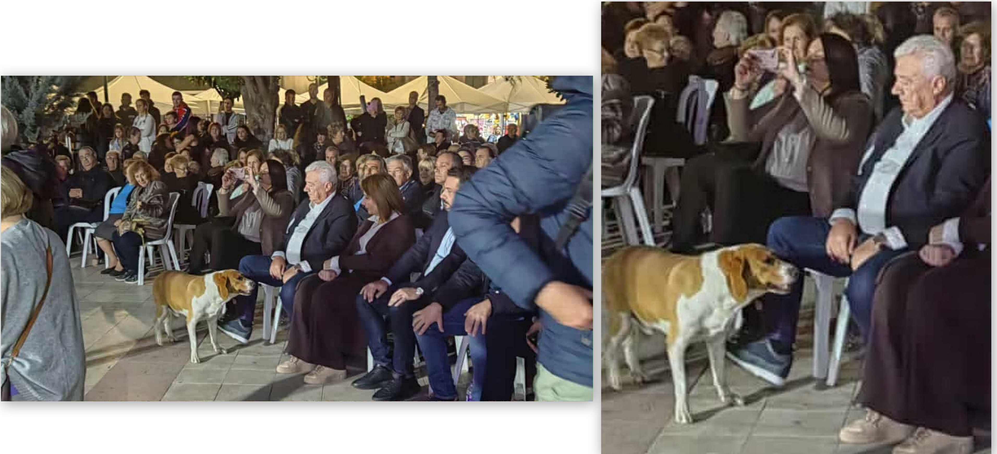 Και θα κλείσω με μια φωτογραφία που πραγματικά με μπέρδεψε. Ο ίδιος ο σκύλος πήγε και στα πόδια του Δημάρχου μας. Δείτε σας παρακαλώ την κίνηση του δεξιού ποδιού του και πείτε μου τι καταλαβαίνετε.