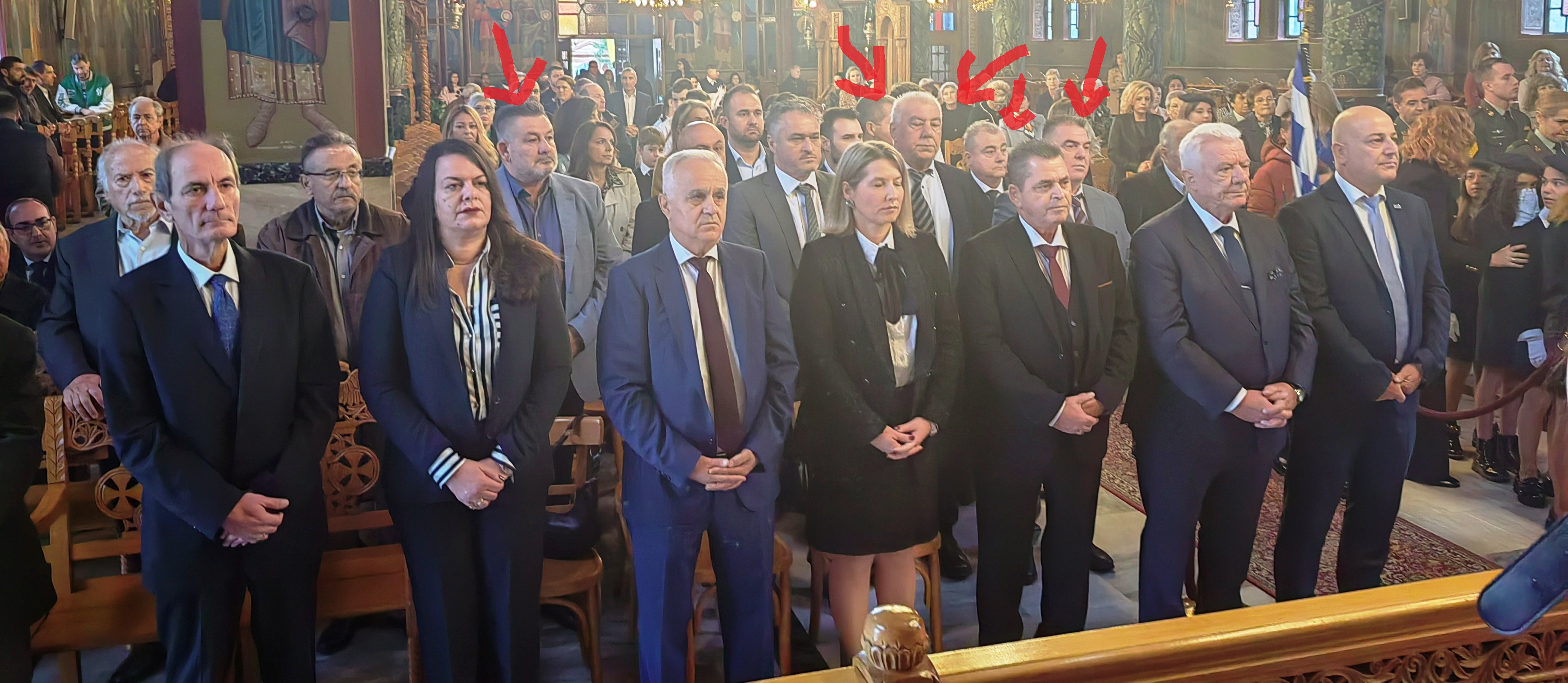 Όπως συνηθίζεται, πρώτη σειρά έκατσαν δήμαρχος, πρόεδρος δημοτικού συμβουλίου, βουλευτές και περιφέρεια. Αμ δε, είχε δεν είχε στρώθηκε και αυτή. Όπου αυτή να βάλετε την αυτού εξοχότης Λαφαζάνη. Δείτε τη φωτογραφία και θα καταλάβετε. Όπου υπάρχει βελάκι είναι και ένας αντιδήμαρχος.
