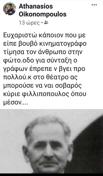 Θα ξεκινήσω με τα παράπονα και τα λάθη του προηγούμενου άρθρου. Δύο για την ακρίβεια. Το πρώτο, έγραψα που να μην έγραφα τρομάρα μου το εξής « Στο ίδιο μήκος κύματος (του βωβού) κινήθηκε και ένας συνταξιούχος πλέον άνθρωπος της παρέλασης. Ο Αθανάσιος Οικονομόπουλος.»