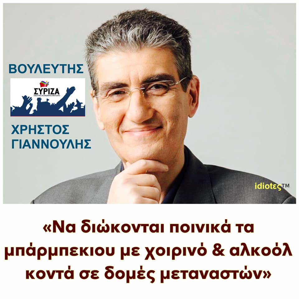 Είμαστε ήδη πολύ καλοί μαζί τους κύριε Γιαννούλη μου. Αλβανοί, Σύριοι, Πακιστανοί κάνουν ουρά στις εφορίες για να εισπράξουν το κοινωνικό μέρισμα ενώ οι Έλληνες περιμένουν στην ουρά για να πάρουν δωρεάν συσσίτιο από τις ενορίες. Σας αγγίζουν καθόλου αυτά ή όχι; Μπορούμε όλοι μας να βοηθήσουμε ανθρώπους που έχουν τόσο φιλελεύθερες ιδέες όπως ο κύριος Γιαννούλης. Τους λέμε απλά «σύνελθε».