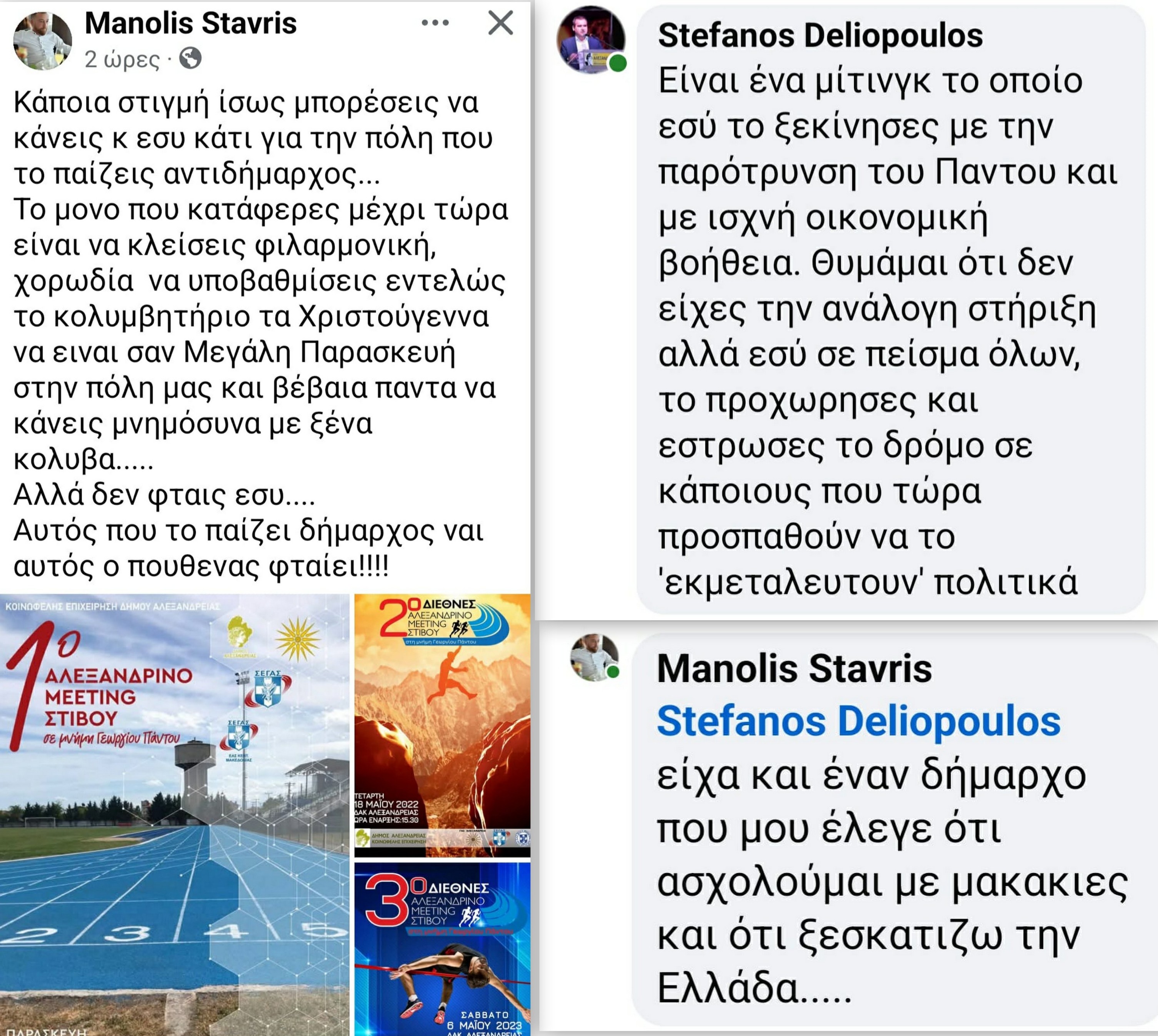 Και συ Μανώλη μου «πουθενάς» ο δήμαρχος; Πιπέρι θα σε βάλω. Πες τον ο «εδώς» ο «εκείς», μη τον αφήνεις χωρίς τόπο και χωρίς πατρίδα. Τον ξεσπίτωσες τον άνθρωπο στα καλά καθούμενα. Βγάλε ένα νέο post και γράψε «κύριε «εδώς» καλά που μ΄ έμαθες να ξεσκατίζω και άλλαξα και καμιά πάνα στα παιδιά μου, σε ευχαριστώ για όλα». Άντε πασά μου, έρχονται και Χριστούγεννα, γιορτή της αγάπης ντε.