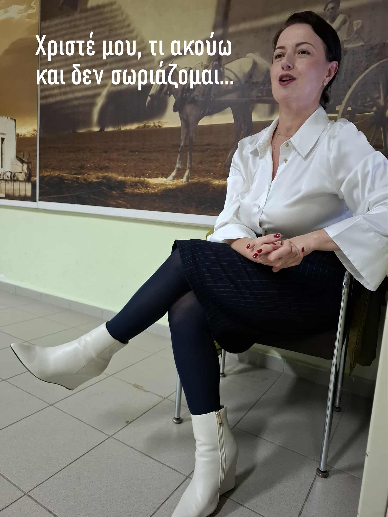 Αυτό είναι το σωστό, το φινετσάτο, το χορευτικό ρε αδελφάκι μου παπούτσι, να χορέψεις το Καραϊσούφ, να το ευχαριστηθείς. Κι όμως, δεν ήταν καλεσμένη η Ντένη Μαρκορά στην έναρξη των μαθημάτων του ομίλου. Τάνια μου, υποκλίνομαι. Δεν ξέρω αν ήσουν σε βάφτιση πριν ή θα πήγαινες σε γάμο μετά, πάντως (εύχομαι) να πήραν το μάθημα τους όλες οι άλλες που ήρθαν με το κολάν να το παίξουν ξαδέλφες της Πετρουλάκη.