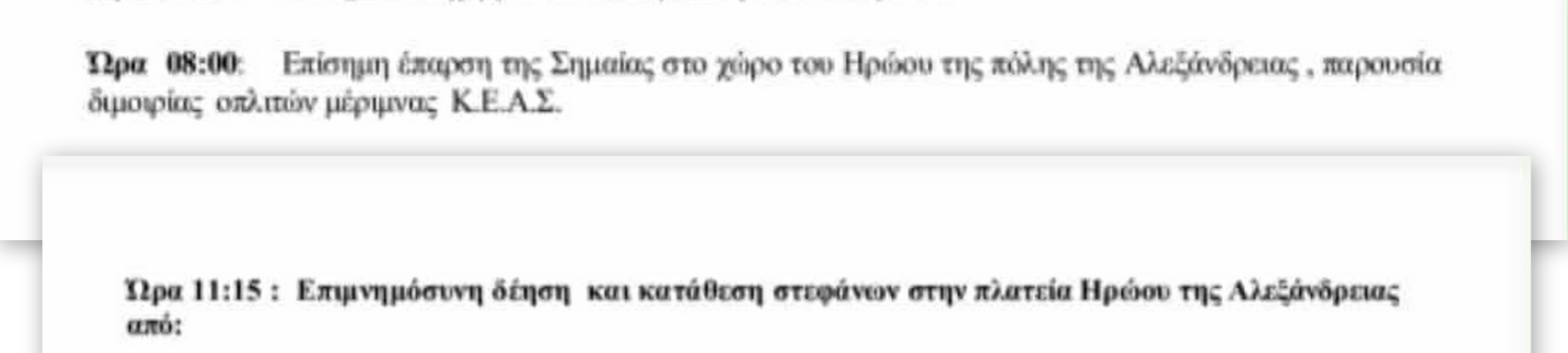 Από την αντιδημαρχία Πολιτισμού, συγγνώμη, από το γραφείο τύπου του Βασιλικού γραφείου ήθελα να πω, στάλθηκε ένα mail σε όλους τους συλλόγους της Αλεξάνδρειας που αφορούσε την απελευθέρωση της πόλης και τις εορταστικές εκδηλώσεις. Μέσα σε όλα έλεγε και τα εξής.