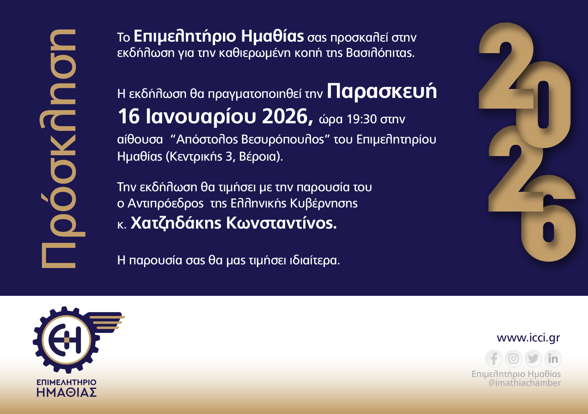Το Επιμελητήριο Ημαθίας σας προσκαλεί στην εκδήλωση για την καθιερωμένη κοπή της Βασιλόπιτας.