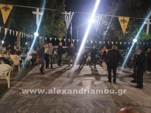 Ο Λαογραφικός Όμιλος Ντόπιων Αλεξανδρείας και Περιχώρων "ΤΟ ΡΟΥΜΛΟΥΚΙ" προς τιμή της επετείου της Απελευθέρωσης της πόλης μας από τον Τουρκικό ζυγό, όπως κάθε χρόνο, πραγματοποίησε ένα ακόμη επιτυχημένο παραδοσιακό γλέντι την Παρασκευή 18 Οκτωβρίου 2024 στις φιλόξενες ιδιόκτητες εγκαταστάσεις του Ομίλου το οποίο συνοδευόταν από μουσική, μεζέδες και κρασί.