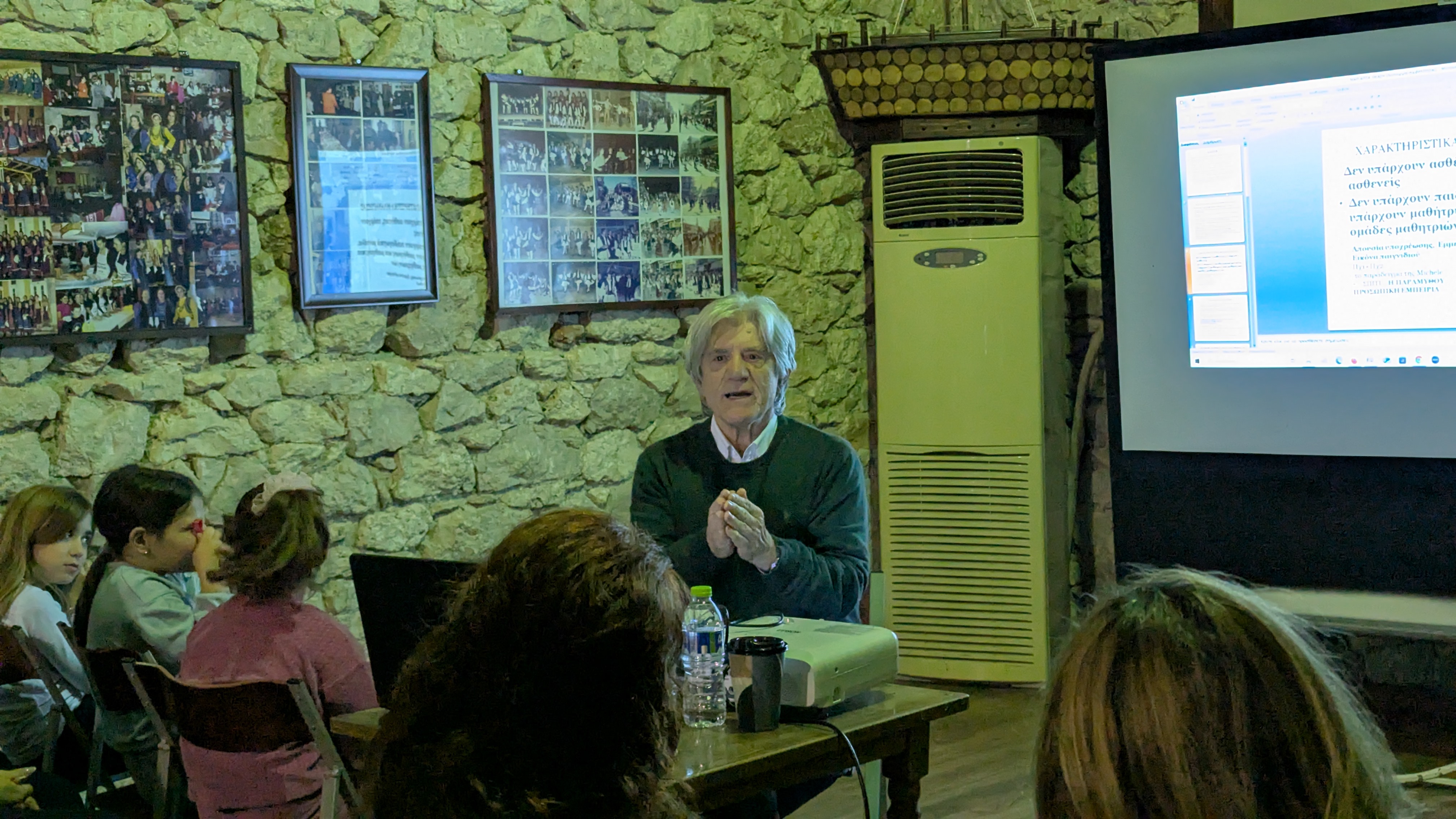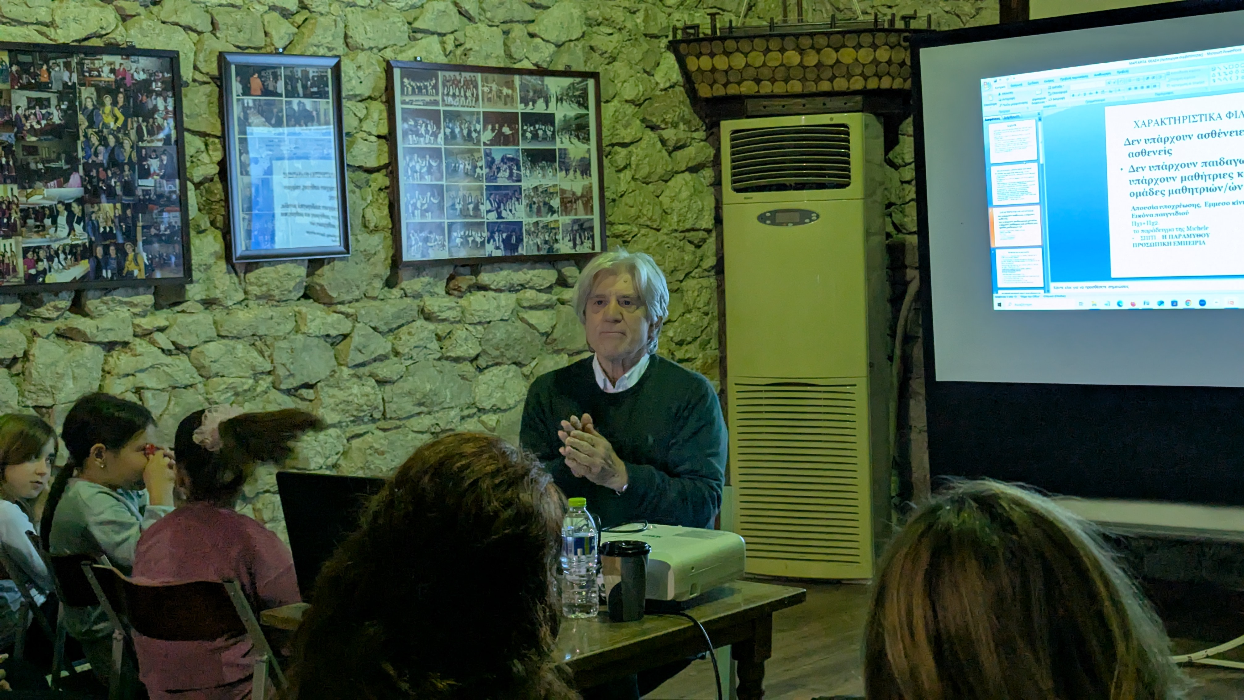 Κεντρικός εισηγητής ήταν ο κ. Ανδρέας Καρακίτσιος, Ομότιμος Καθηγητής της Παιδαγωγικής Σχολής του Α.Π.Θ., ο οποίος καθήλωσε το ακροατήριο με τις επιστημονικά τεκμηριωμένες προτάσεις του αλλά και τις απλές, εφαρμόσιμες λύσεις για το πώς οι γονείς μπορούν να φέρουν τα παιδιά πιο κοντά στη λογοτεχνία. Με ιδιαίτερη έμφαση στο πόσο καθοριστικό είναι το παράδειγμα των ενηλίκων, ο κ. Καρακίτσιος ανέδειξε τη φιλαναγνωσία ως ισχυρό εργαλείο συναισθηματικής, γλωσσικής και γνωστικής ανάπτυξης.