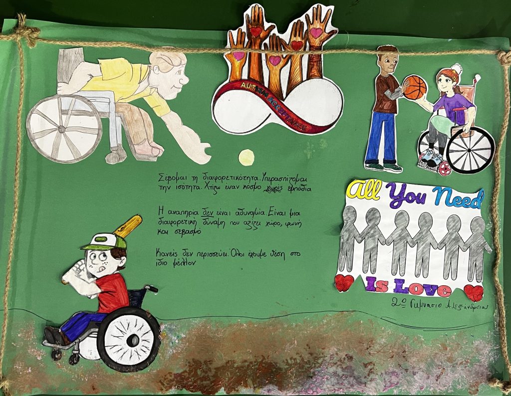 Με αφορμή την Παγκόσμια Ημέρα Ατόμων με Αναπηρίες, το 2ο Γυμνάσιο Αλεξάνδρειας πραγματοποίησε μια σειρά από εκπαιδευτικές και βιωματικές δράσεις με στόχο την ενημέρωση, την ευαισθητοποίηση και την καλλιέργεια στάσεων σεβασμού, αποδοχής και συμπερίληψης. Οι δράσεις υλοποιήθηκαν σε συνεργασία με το 2ο Λύκειο Αλεξάνδρειας και τον Αθλητικό Σύλλογο Ατόμων με Αναπηρίες ν. Ημαθίας «Αιγές-Βεργίνα», οι οποίοι συνέβαλαν καθοριστικά στην επιτυχία της πρωτοβουλίας.Τις εκδηλώσεις τίμησαν με την παρουσία τους ο Διευθυντής της Δευτεροβάθμιας Εκπαίδευσης ν. Ημαθίας κ. Αλατζόγλου Αθανάσιος , ο πρόεδρος και ο αντιπρόεδρος του Συλλόγου Γονέων και Κηδεμόνων του 2ου Γυμνασίου Αλεξάνδρειας καθώς και ο πρόεδρος του Συλλόγου Γονέων και Κηδεμόνων του 2ου Λυκείου Αλεξάνδρειας.