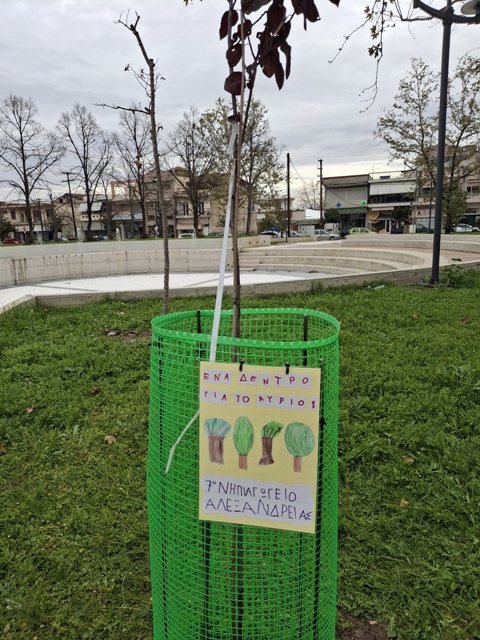Οι μαθητές και οι μαθήτριες του 7ου Νηπιαγωγείου Αλεξάνδρειας, συνοδευόμενοι από τις εκπαιδευτικούς Πασχαλίδου Αναστασία, Πάντα Αλεξία και Γατοπούλου Δέσποινα, στο πλαίσιο των δράσεων Ενεργού Πολίτη, υλοποίησαν μια δράση δενδροφύτευσης.