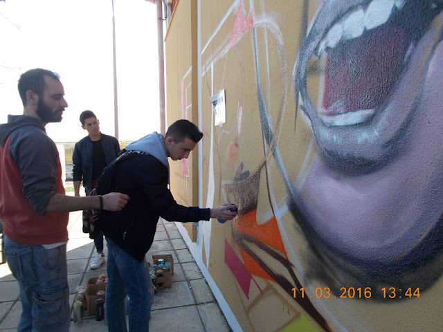 Παρασκευή και σήμερα Σάββατο 11 & 12 Μαρτίου 2016 ο καλλιτέχνης Apset της Urban Act (της Ελληνικής street Art σκηνής) με τη "βοήθεια" μαθητών του ΕΠΑΛ & Ε.Κ. Αλεξάνδρειας "δημιουργεί" Graffiti