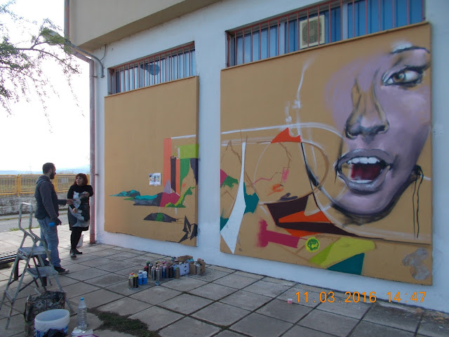 Παρασκευή και σήμερα Σάββατο 11 & 12 Μαρτίου 2016 ο καλλιτέχνης Apset της Urban Act (της Ελληνικής street Art σκηνής) με τη "βοήθεια" μαθητών του ΕΠΑΛ & Ε.Κ. Αλεξάνδρειας "δημιουργεί" Graffiti