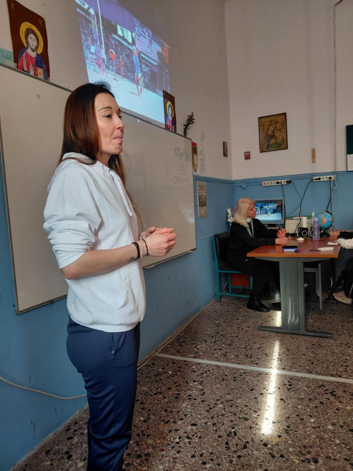 Η εκδήλωση ξεκίνησε με διαδραστική ομιλία της γυμνάστριας του σχολείου, κας Στάμτση Χάιδως, η οποία προσέγγισε με παιδαγωγικό τρόπο τις έννοιες του «ευ αγωνίζεσθαι», του σεβασμού και της αποδοχής της διαφορετικότητας. Μέσα από διάλογο και παραδείγματα, τα παιδιά κλήθηκαν να σκεφτούν τον ρόλο τους ως ενεργοί φίλαθλοι μέσα και έξω από το γήπεδο.