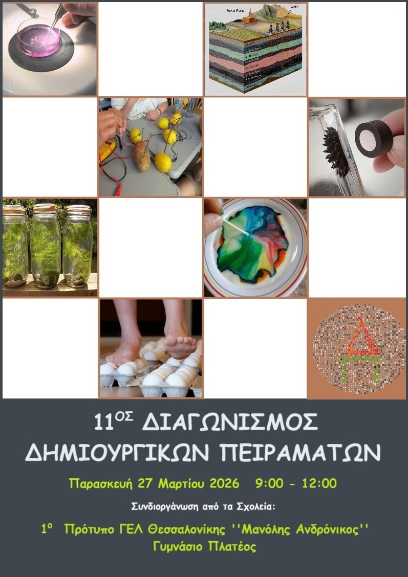 Με ιδιαίτερη επιτυχία πραγματοποιήθηκε την Παρασκευή 27 Μαρτίου 2026 στο Γυμνάσιο Πλατέος ο ΄΄11ος Διαγωνισμός Δημιουργικών Πειραμάτων Φυσικών Επιστημών΄΄, μια δράση που ανέδειξε τη δημιουργικότητα, τη συνεργασία και την επιστημονική σκέψη των μαθητών και μαθητριών των Γυμνάσιων.