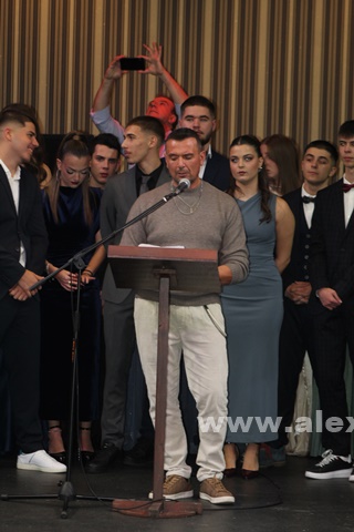 Στον χαιρετισμό που απηύθυνε ο Διευθυντής του Λυκείου κ. Κούγκας, ευχήθηκε -στην τελευταία του παρουσία σε χορό αποφοίτησης ως Διευθυντής αφού του χρόνου συνταξιοδοτείται- στους μαθητές να έχουν καλή επιτυχία στους στόχους που θέτουν