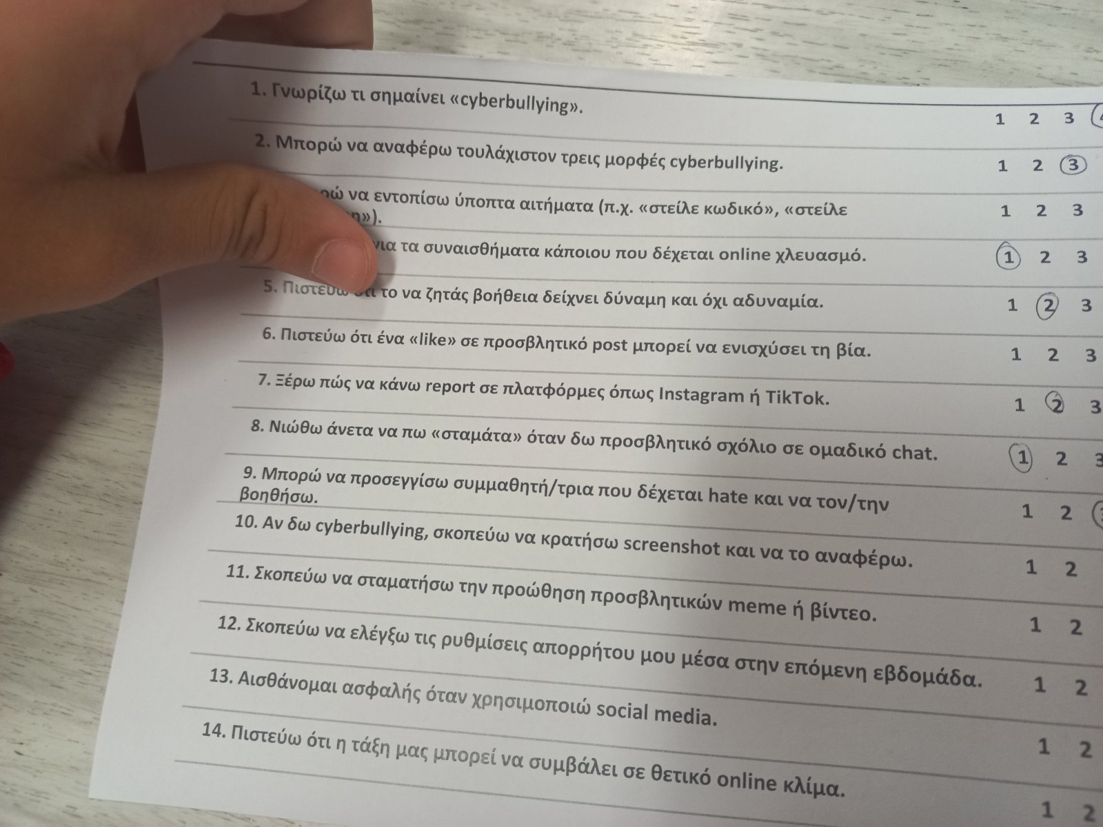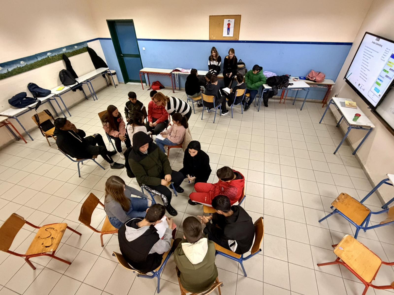 Στο εργαστήριο οι μαθητές συμμετείχαν ενεργά, μέσα από συζήτηση και βιωματικές δραστηριότητες, αναγνωρίζοντας τις μορφές διαδικτυακού εκφοβισμού,