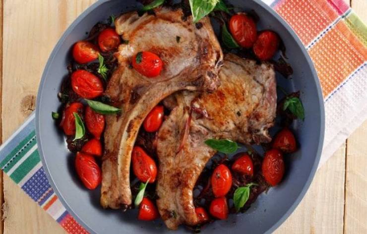 Πέμπτη- Μπριζόλες µε ντοµατίνια και βαλσαµικό