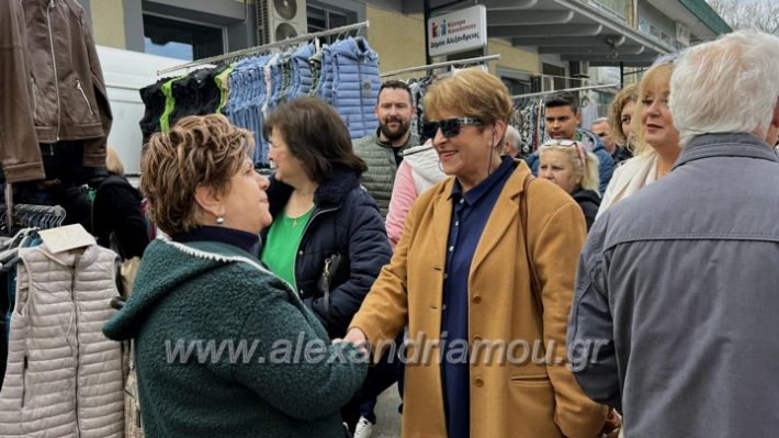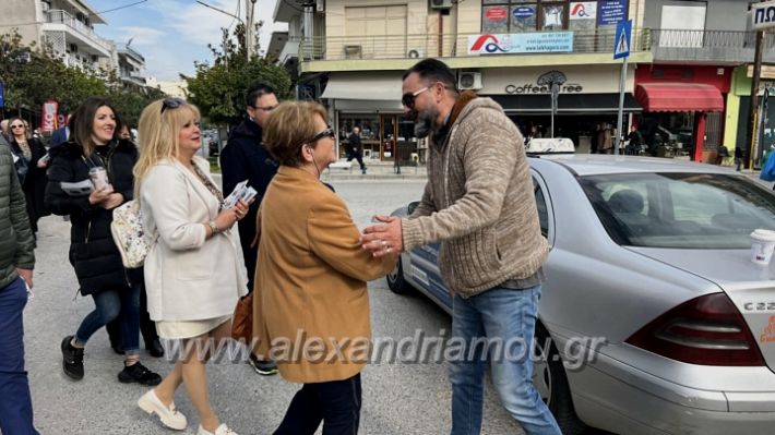 Στην αγορά της πόλης της Αλεξάνδρειας βρέθηκε το πρωί του Σαββάτου 24 Φεβρουαρίου η υποψήφια Δήμαρχος Αλεξάνδρειας κ. Δώρα Κουρκουτά μαζί με συνεργάτες της και συνοδευόμενοι από μέλη του συνδυασμού ¨Μαζί ΑλλάΖΟΥΜΕ¨ για να δώσει το μήνυμα της ανανέωσης και της αλλαγής και το κλίμα των ενδεχόμενων επικείμενων εκλογών.