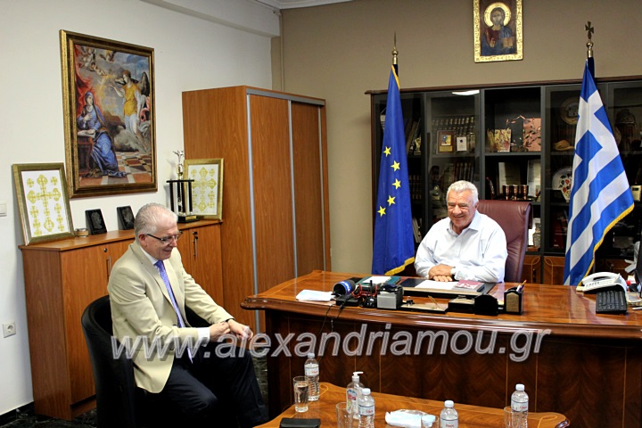 Μετέπειτα ο Πρόεδρος του ασφαλιστικού Οργανισμού των αγροτών επισκέφθηκε το Δημαρχείο της Αλεξάνδρειας όπου συναντήθηκε με τον Δήμαρχο κ. Παναγιώτη Γκυρίνη παρουσία μελών της Δημοτικής αρχής.