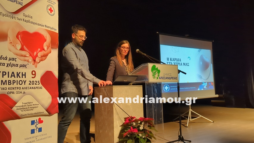 Με επιτυχία πραγματοποιήθηκε την Κυριακή 9 Νοεμβρίου 2025 στο Πνευματικό Κέντρο Αλεξάνδρειας η εξαιρετικά ενδιαφέρουσα εκδήλωση με τίτλο «Η καρδιά μας είναι στα χέρια μας», που διοργάνωσαν το Κέντρο Υγείας Αλεξάνδρειας και η 3η Υγειονομική Περιφέρεια Μακεδονίας(3η ΥΠΕ), σε συνεργασία με το Περιφερειακό Τμήμα Αλεξάνδρειας του Ελληνικού Ερυθρού Σταυρού.