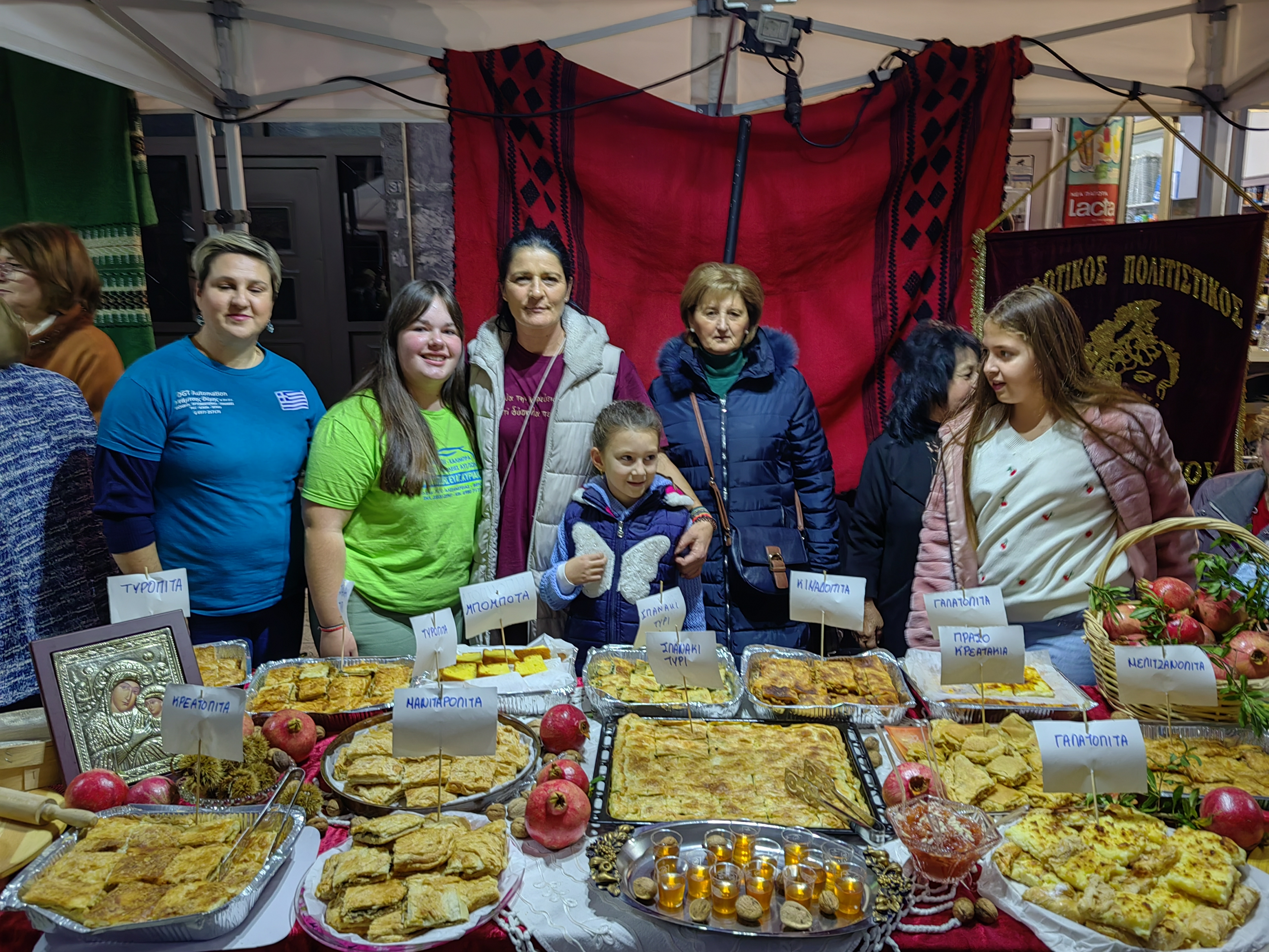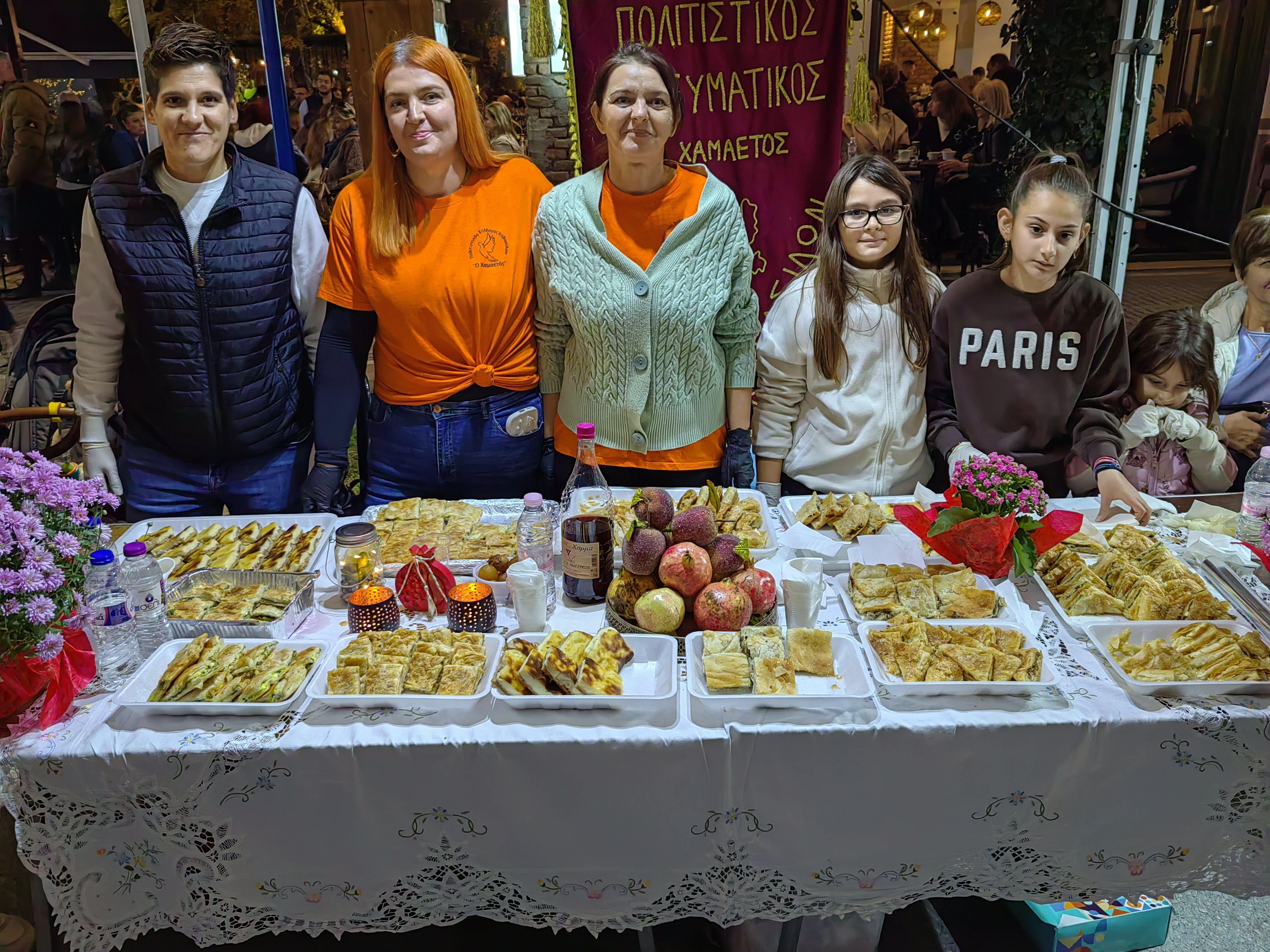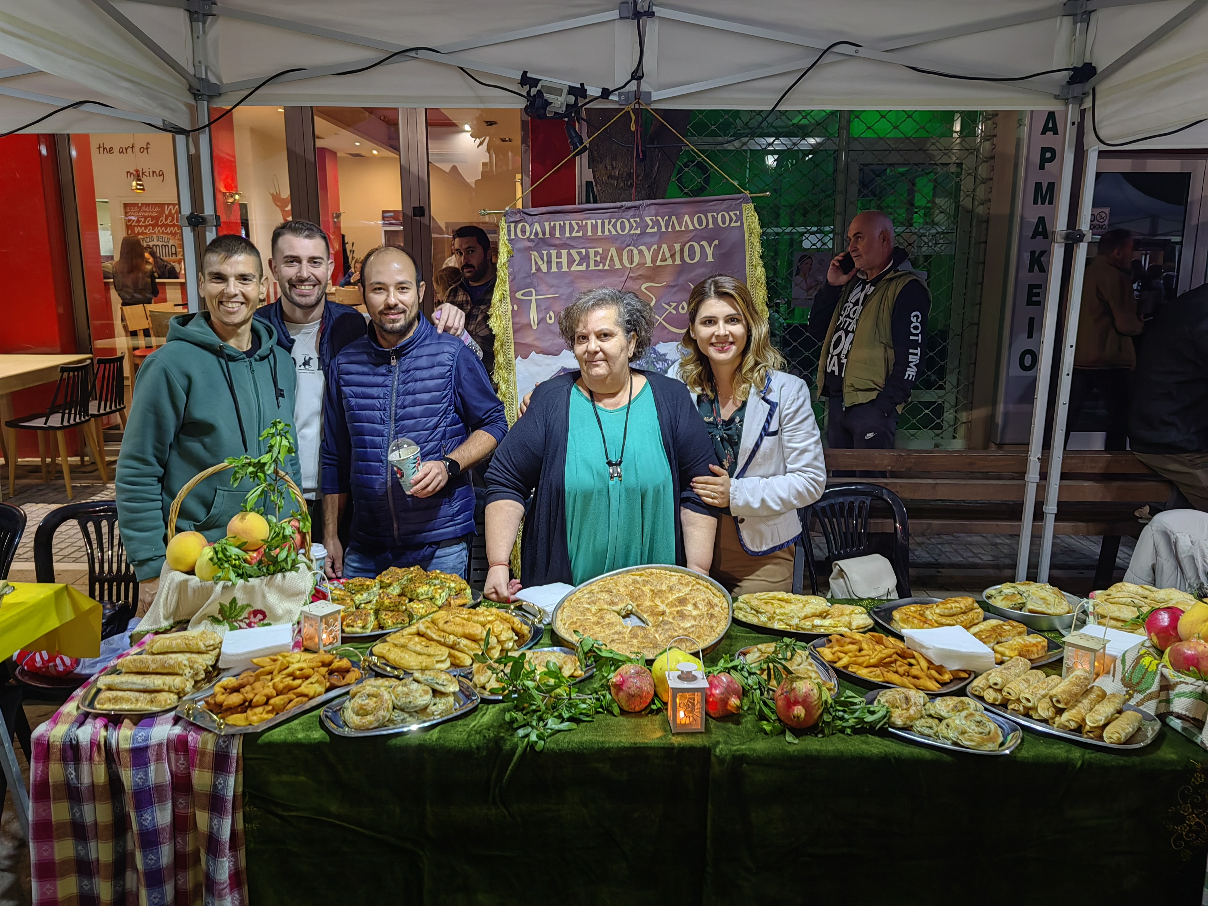 Από νωρίς, ο χώρος πλημμύρισε με αρώματα από σπιτικές πίτες, αλμυρές και γλυκές, φτιαγμένες με μεράκι και παραδοσιακές συνταγές που περνούν από γενιά σε γενιά. Χορτόπιτες, τυρόπιτες, κιχιά, κολοκυθόπιτες και μυρωδάτες γλυκές πίτες με κανέλα και καρύδι, προσφέρθηκαν απλόχερα σε όλους, κάνοντας τους επισκέπτες να αναπολήσουν γεύσεις παιδικών χρόνων.