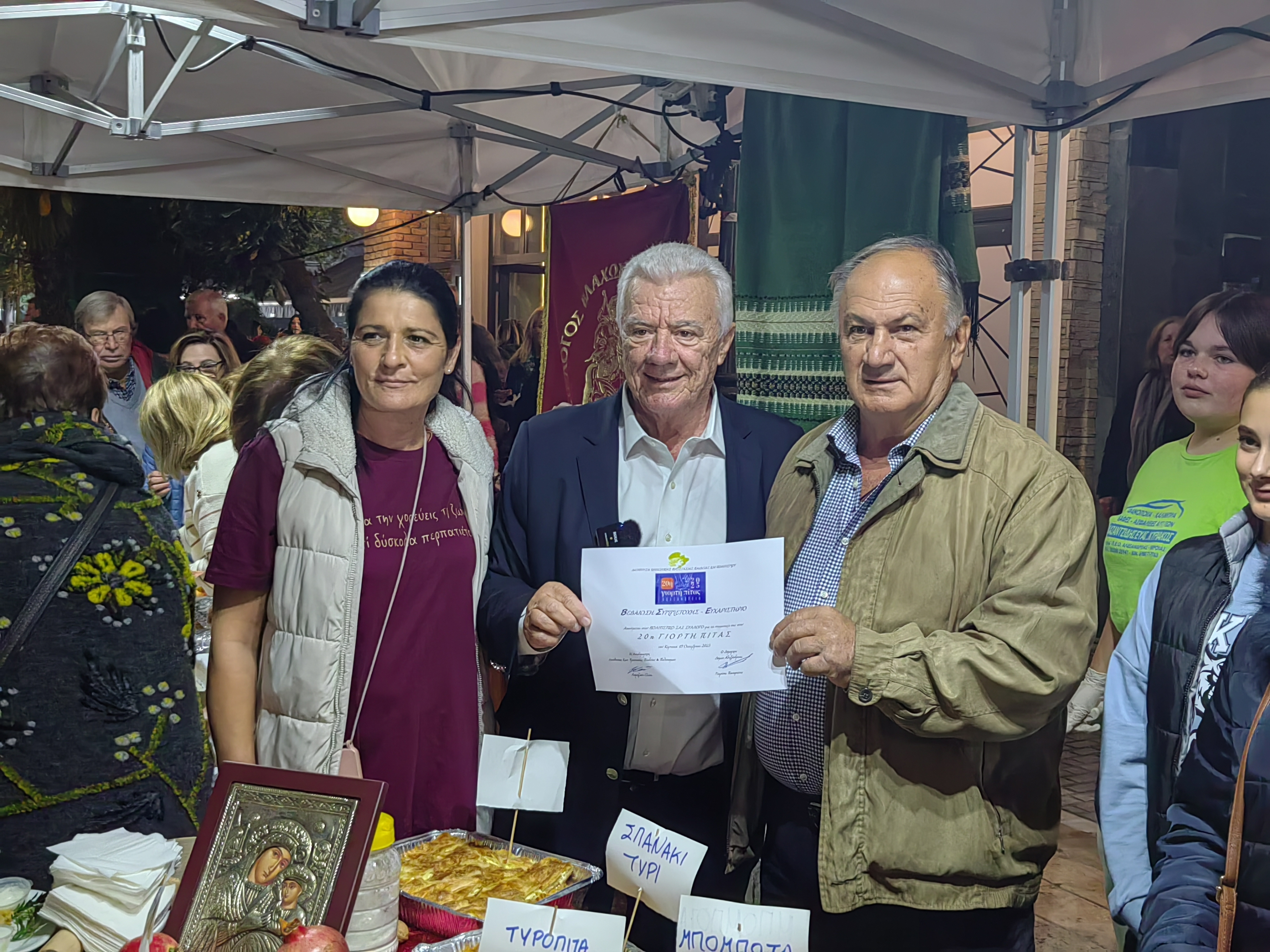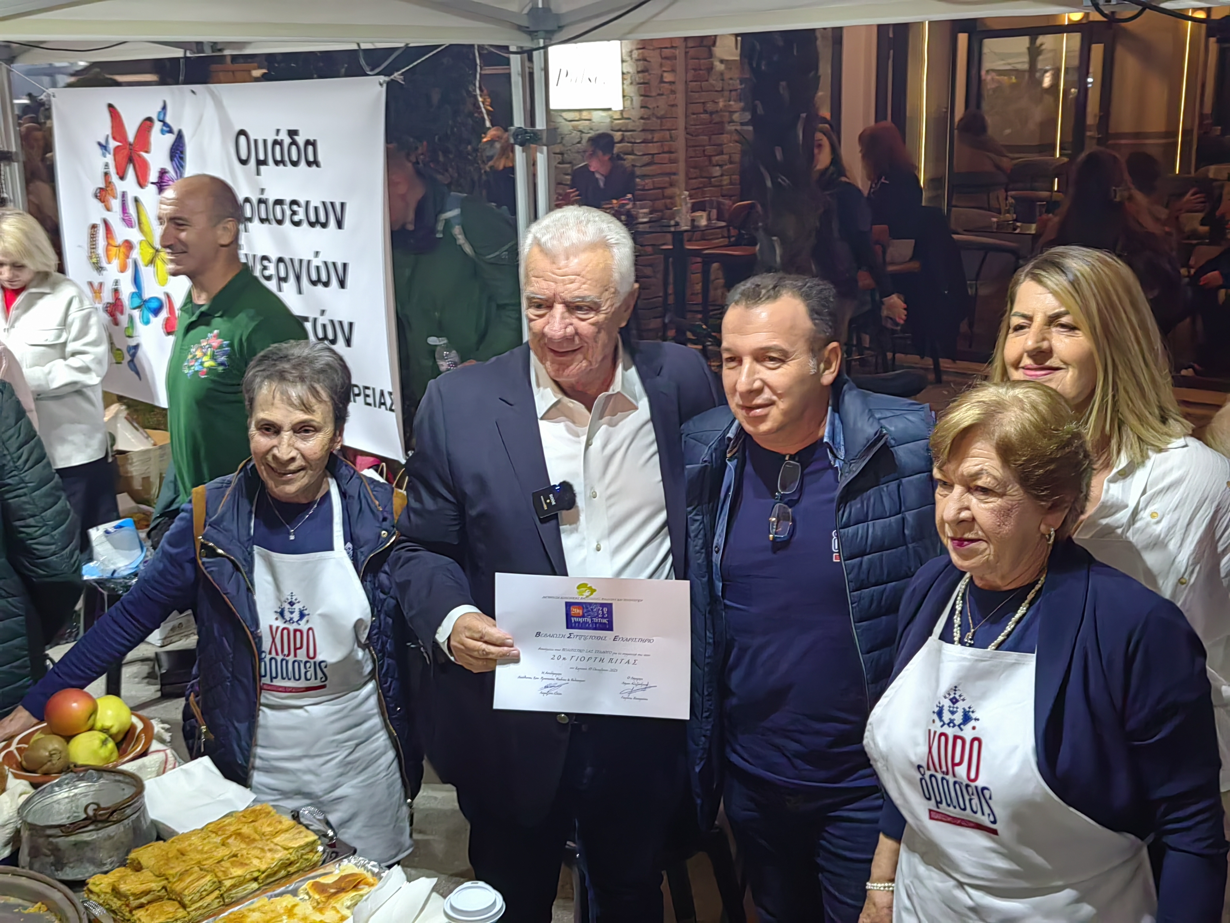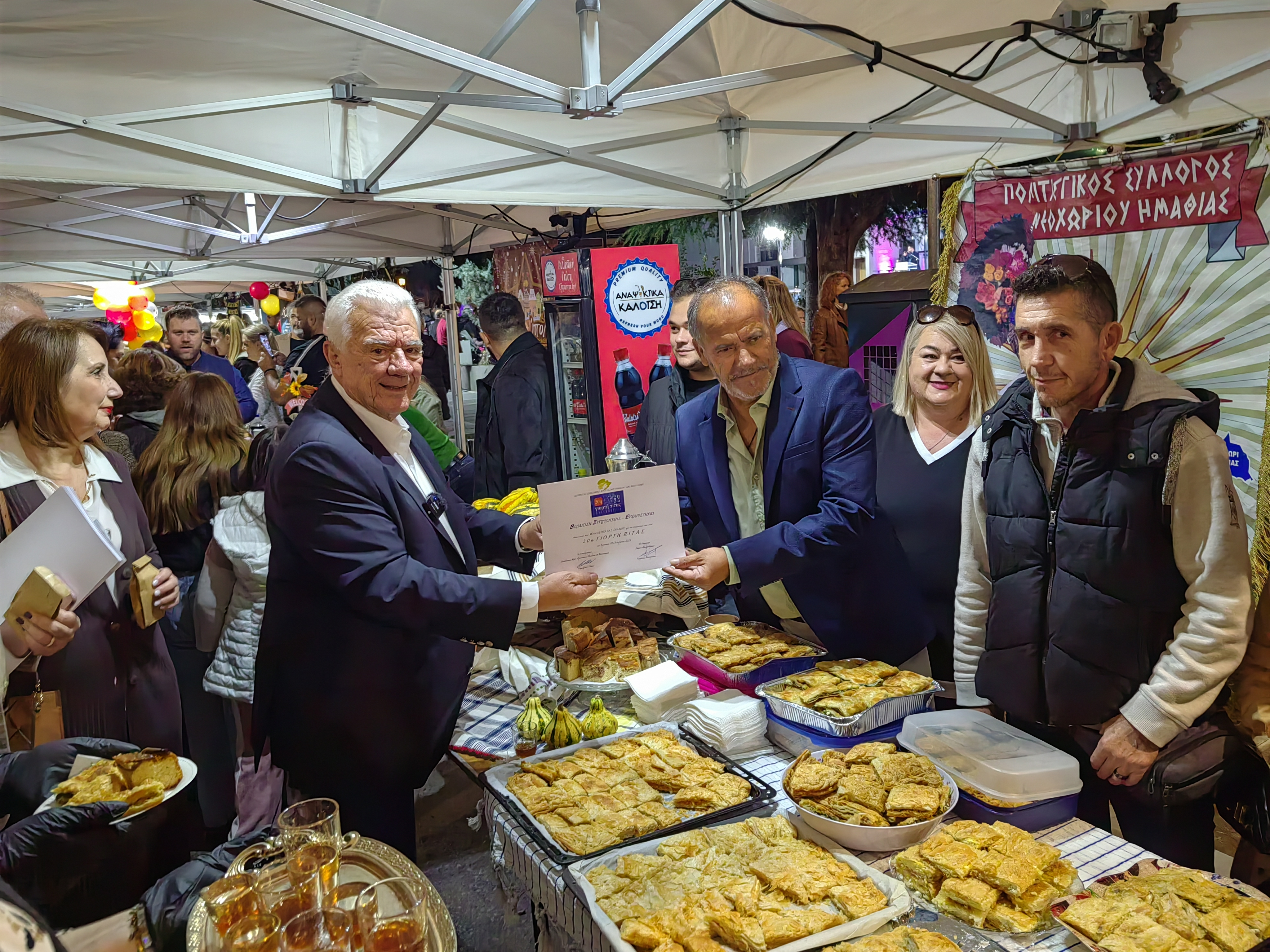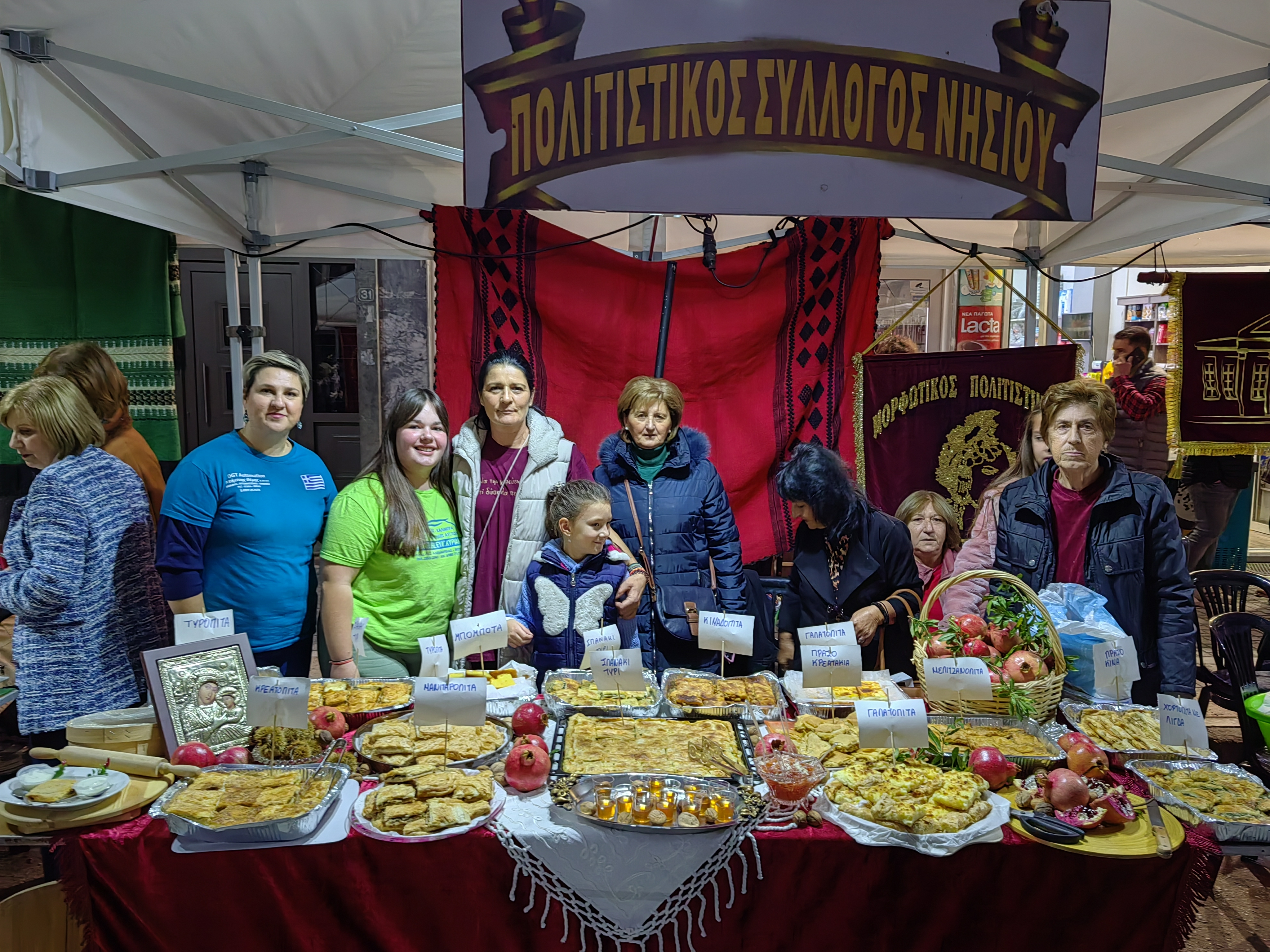 Από νωρίς, ο χώρος πλημμύρισε με αρώματα από σπιτικές πίτες, αλμυρές και γλυκές, φτιαγμένες με μεράκι και παραδοσιακές συνταγές που περνούν από γενιά σε γενιά. Χορτόπιτες, τυρόπιτες, κιχιά, κολοκυθόπιτες και μυρωδάτες γλυκές πίτες με κανέλα και καρύδι, προσφέρθηκαν απλόχερα σε όλους, κάνοντας τους επισκέπτες να αναπολήσουν γεύσεις παιδικών χρόνων.