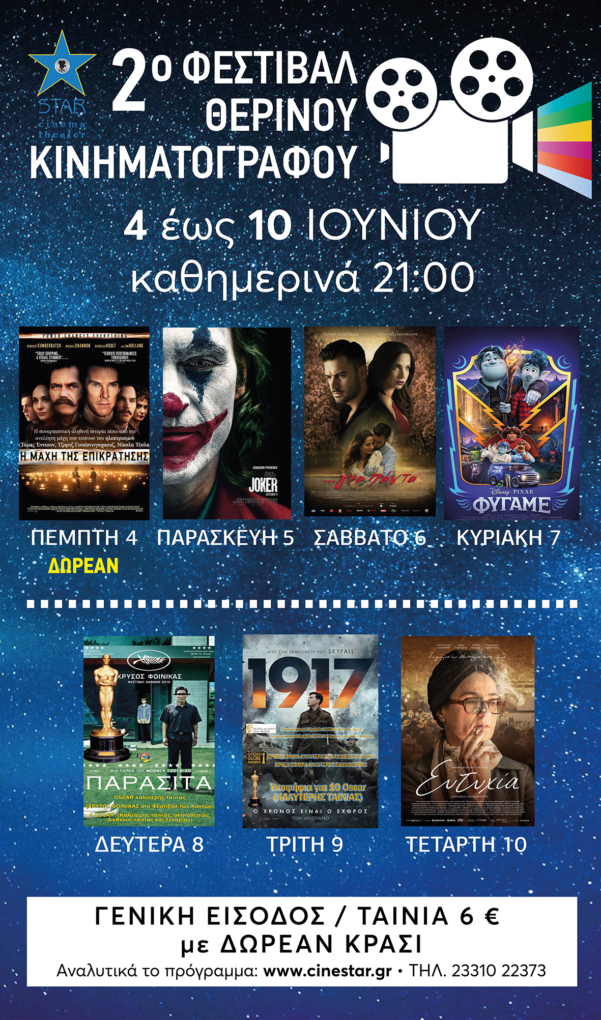 Λόγω περιορισμών για την ασφάλεια σας και του προσωπικού μας, θα υπάρχει δυνατότητα προπώλησης εισιτηρίων από την Δευτέρα 1/6 έως Τετάρτη 3/6 από το ταμείο του κινηματοΘέατρου ΣΤΑΡ