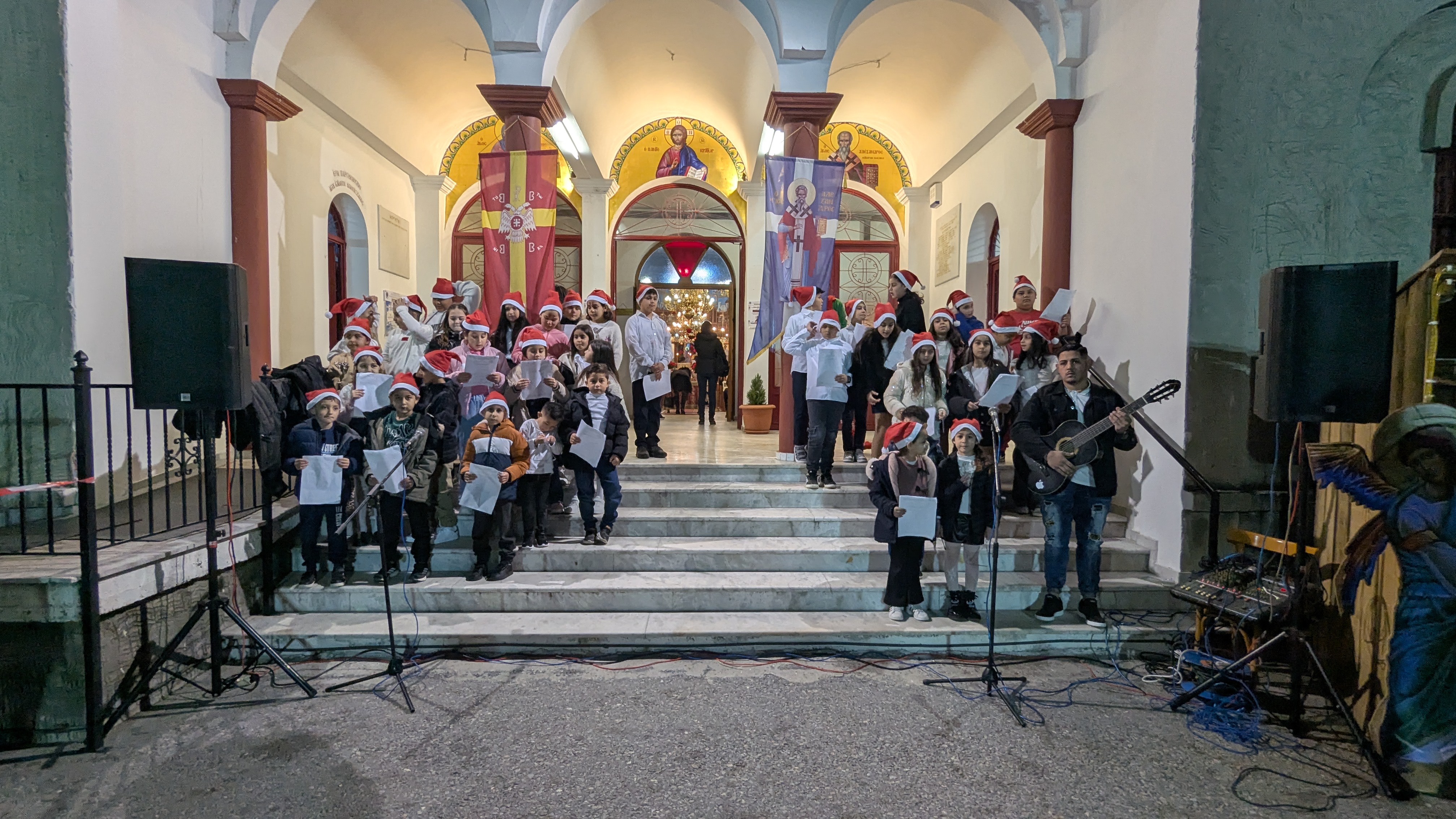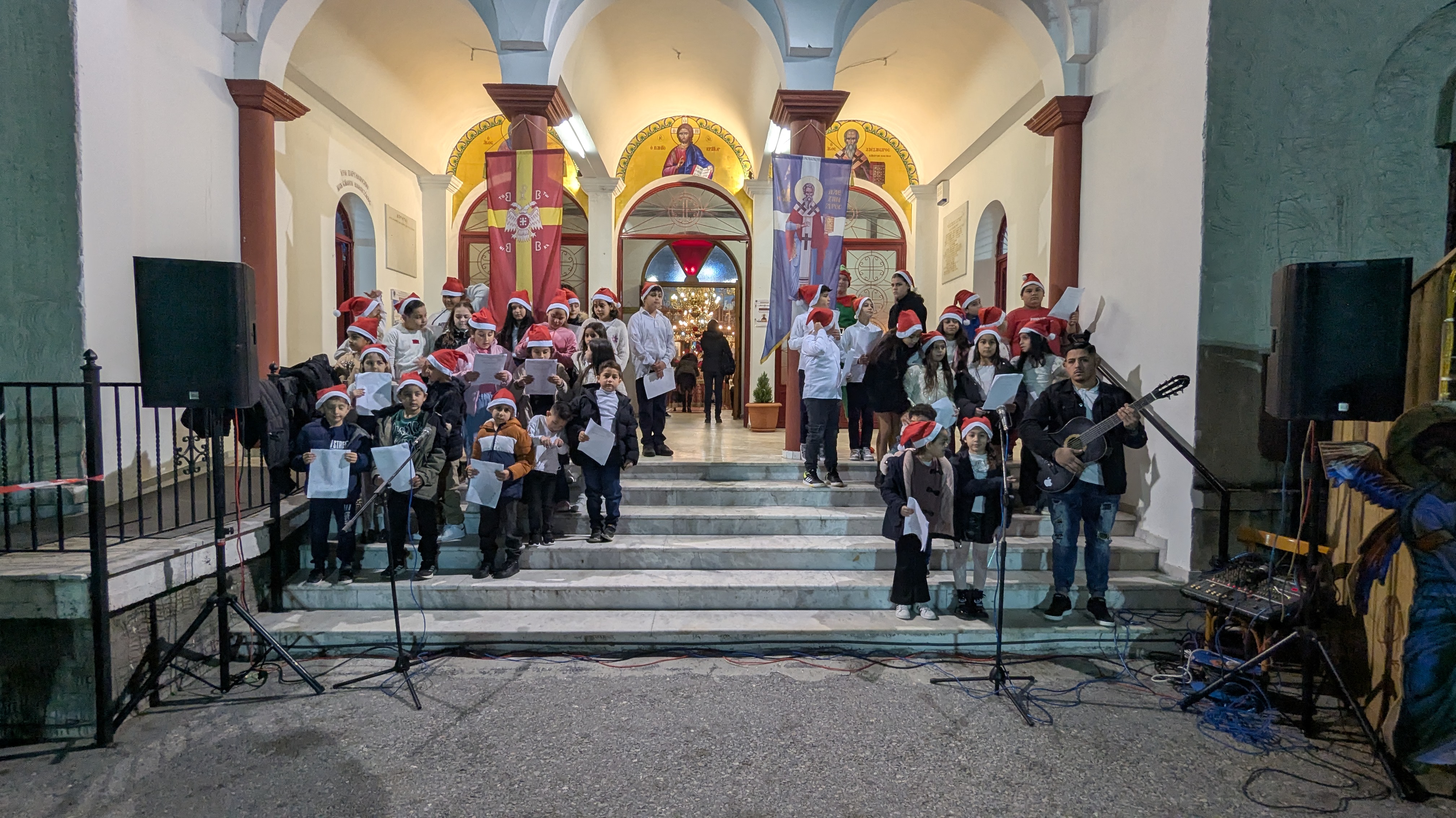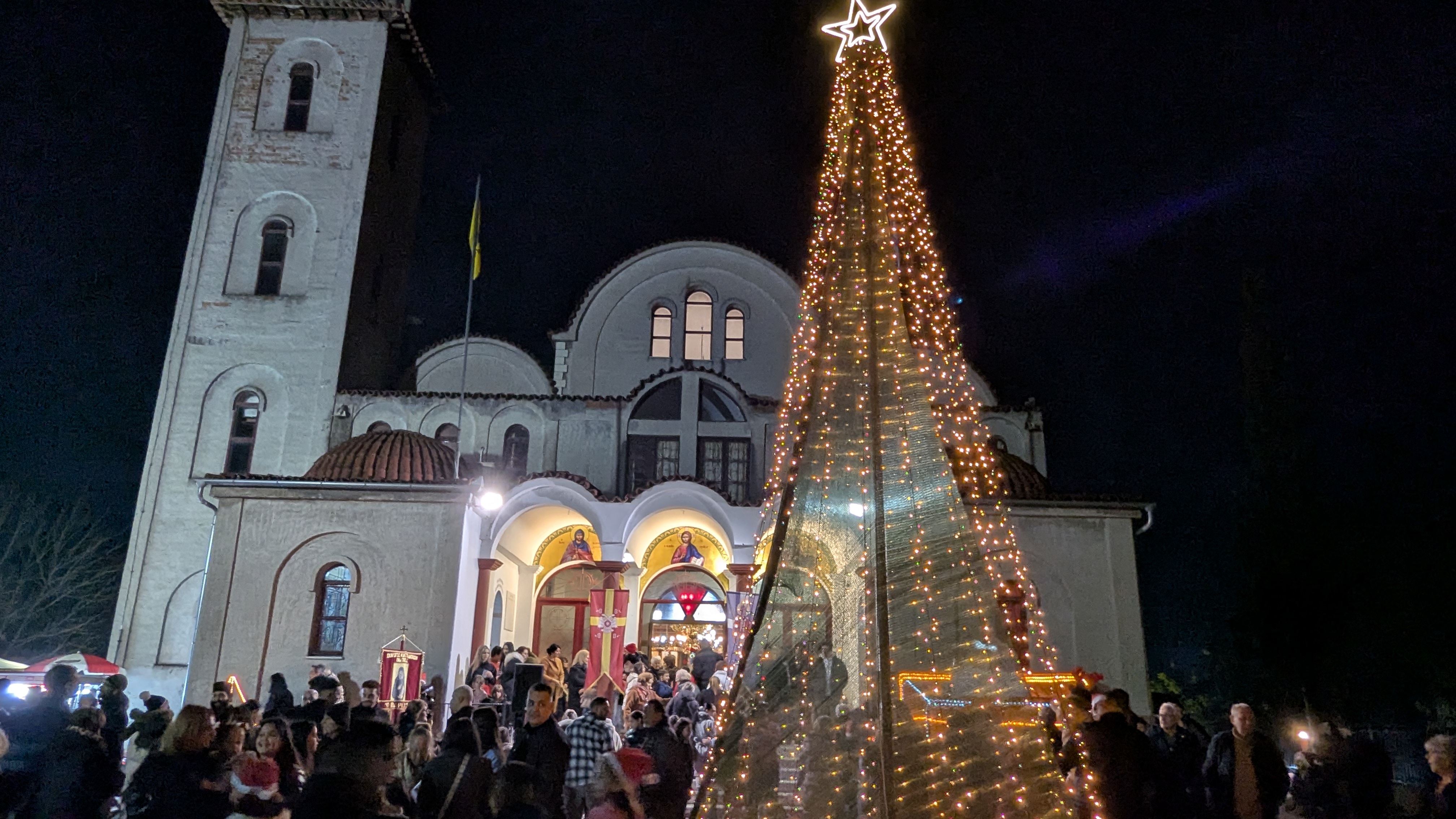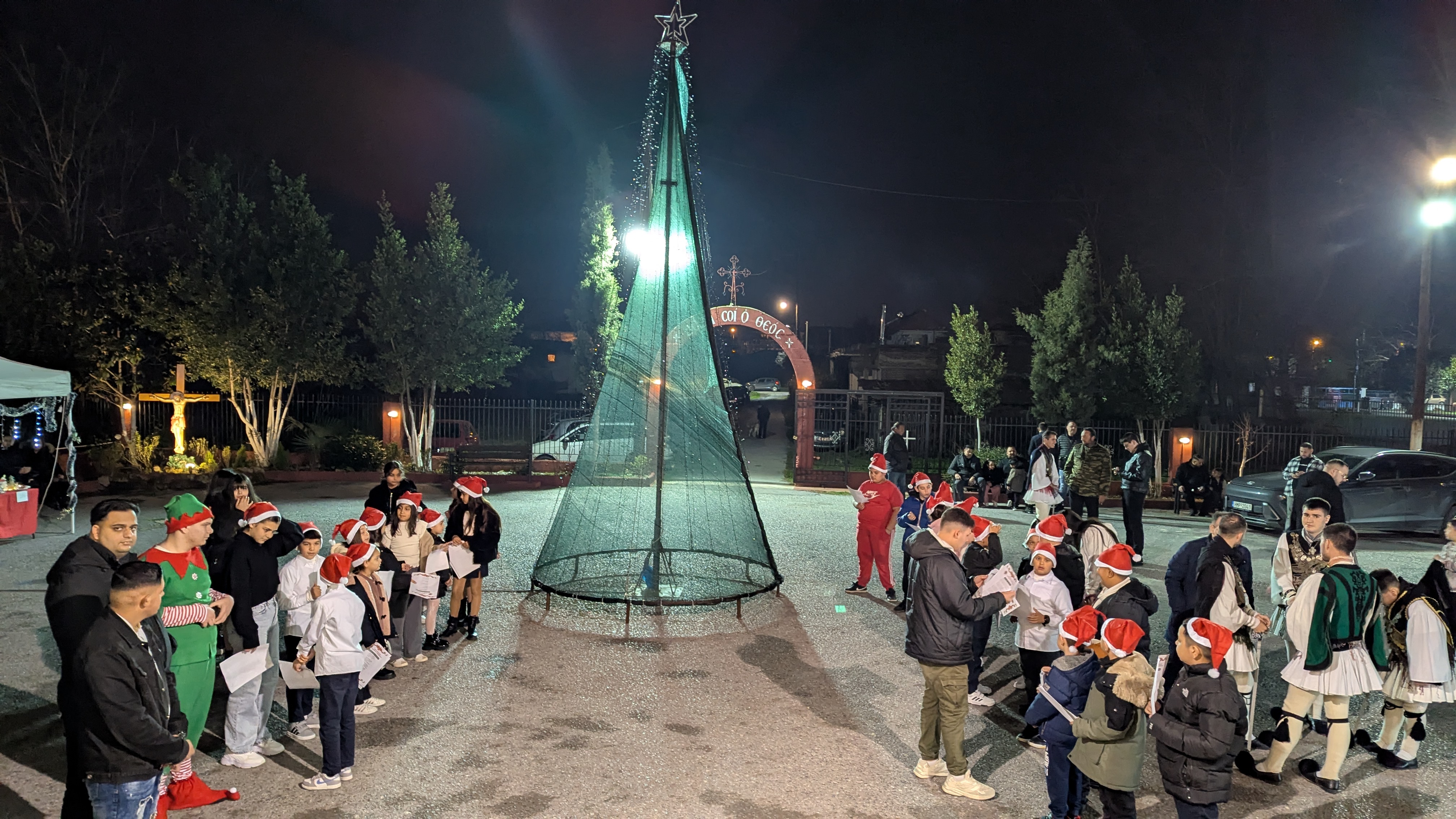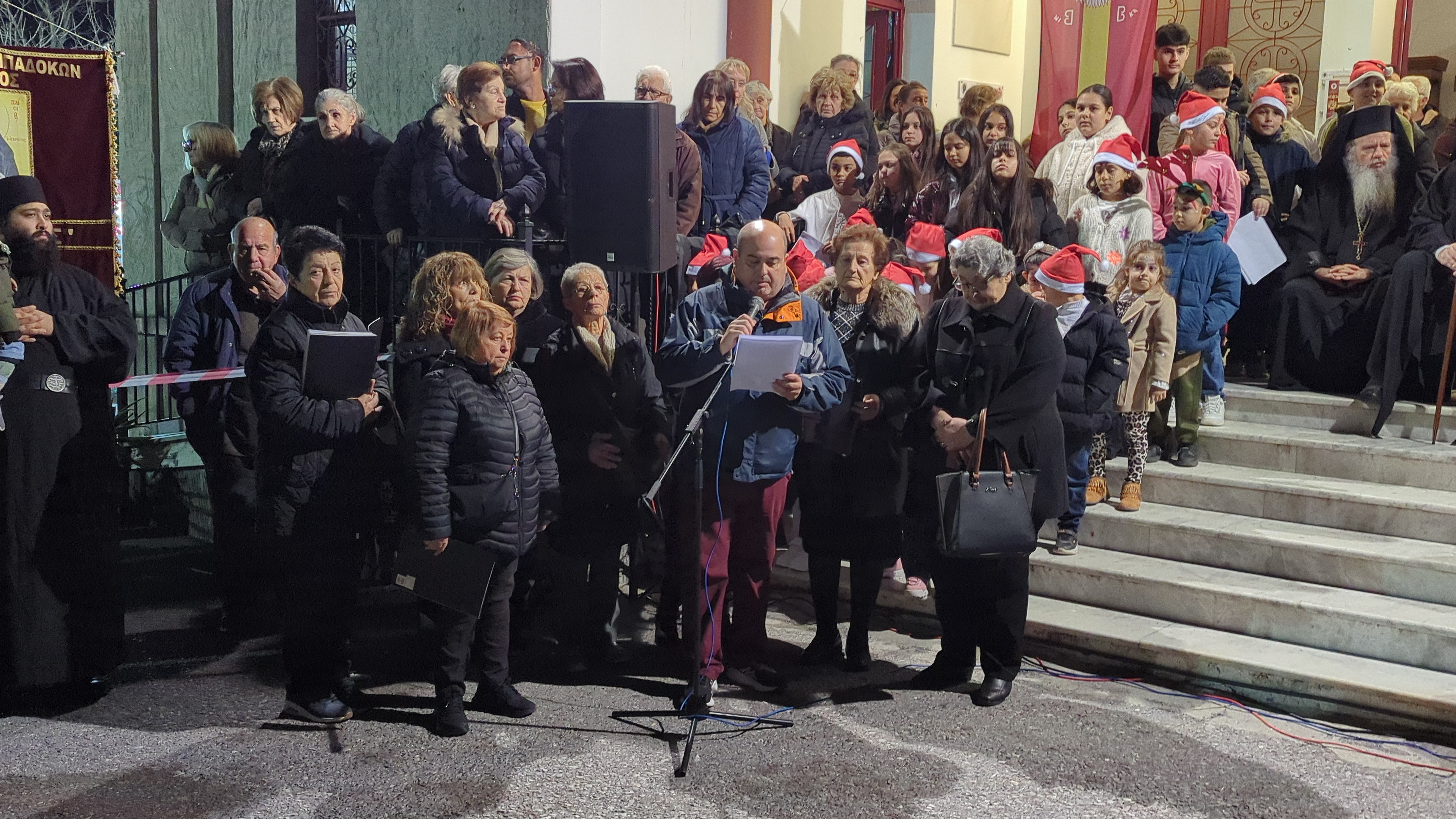 Στη συνέχεια, στις 19:00, στον αύλειο χώρο του Ναού, πραγματοποιήθηκε το άναμμα του Χριστουγεννιάτικου Δέντρου της ενορίας, σηματοδοτώντας την έναρξη των εορταστικών εκδηλώσεων και μεταδίδοντας το μήνυμα της ελπίδας και της αγάπης σε μικρούς και μεγάλους.