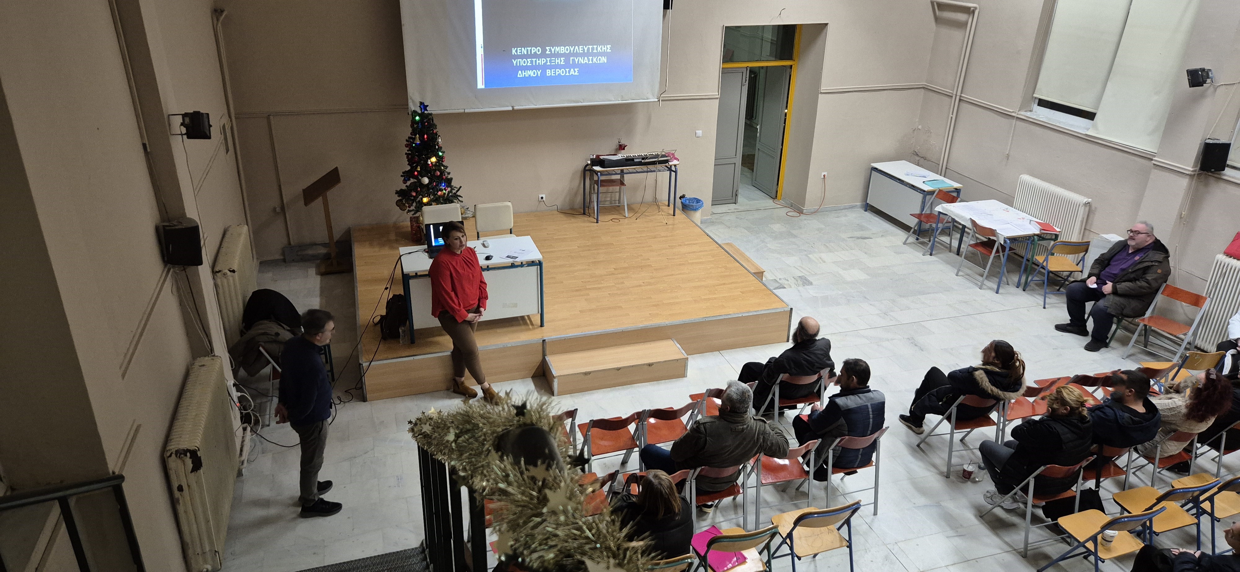 Το απόγευμα της Τετάρτης 10 Δεκεμβρίου 2025 οι μαθητές, οι μαθήτριες και το εκπαιδευτικό προσωπικό του ΣΔΕ Αλεξάνδρειας είχαν την ευκαιρία να παρακολουθήσουν την παρουσίαση των δύο φορέων και να συζητήσουν θέματα που αφορούν τα έμφυλα κοινωνικά στερεότυπα, τον τρόπο με τον οποίο επηρεάζουν τις προσωπικές και οικογενειακές σχέσεις, τις μορφές βίας καθώς και τους μηχανισμούς αναγνώρισης και αντιμετώπισης της. Παράλληλα παρουσιάστηκαν οι δωρεάν παρεχόμενες υπηρεσίες του Συμβουλευτικού Κέντρου Γυναικών Δήμου Βέροιας, όπως ψυχοκοινωνική συμβουλευτική, νομική υποστήριξη, εργασιακή συμβουλευτική και παραπομπές σε δομές φιλοξενίας του Δικτύου της ΓΓΙΑΔ. Επίσης παρουσιάστηκε το πλαίσιο λειτουργίας και οι ενέργειες που πραγματοποιούνται από την πλευρά της Αστυνομίας για την υποστήριξη και την προστασία των θυμάτων και υπογραμμίστηκε ότι τα περιστατικά ενδοοικογενειακής βίας αποτελούν αυτεπάγγελτο αδίκημα.