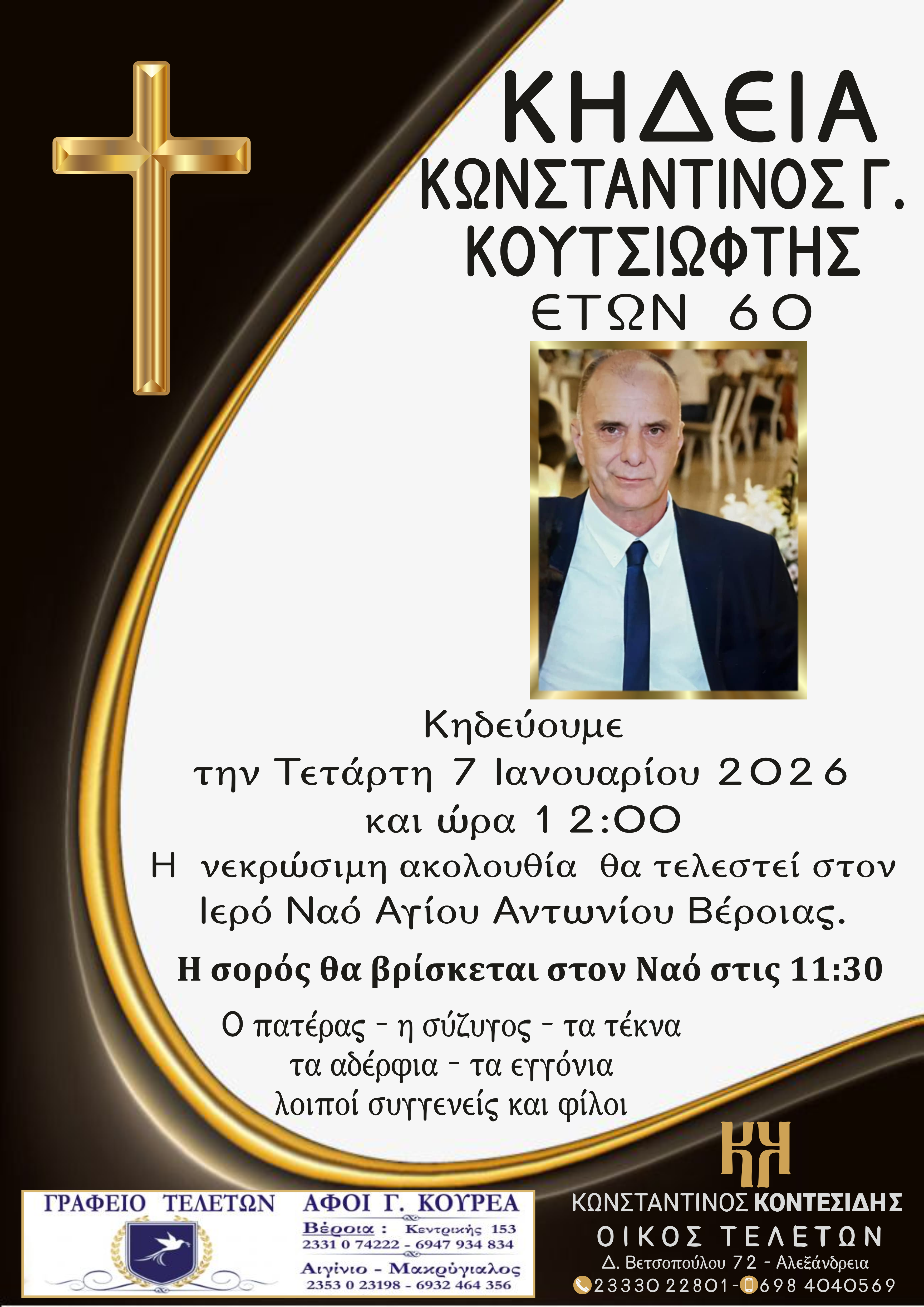 Έφυγε από τη ζωή ο Κωνσταντίνος Γ. Κουτσιώφτης - Στη Βέροια η Κηδεία του