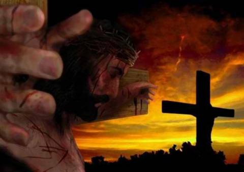 Η σκηνή εκτυλίσσεται μπροστά από τα τείχη της Ιερουσαλήμ, με κεντρική μορφή τον Εσταυρωμένο Χριστό, του οποίου η στάση δηλώνει τη στιγμή μετά τον θάνατό Του («καὶ κλίνας τὴν κεφαλὴν παρέδωκε τὸ πνεῦμα», Ιω. ιθ΄30). Από τη λογχισμένη πλευρά Του ρέουν αίμα και ύδωρ που συλλέγονται σε Άγιο Ποτήριο.