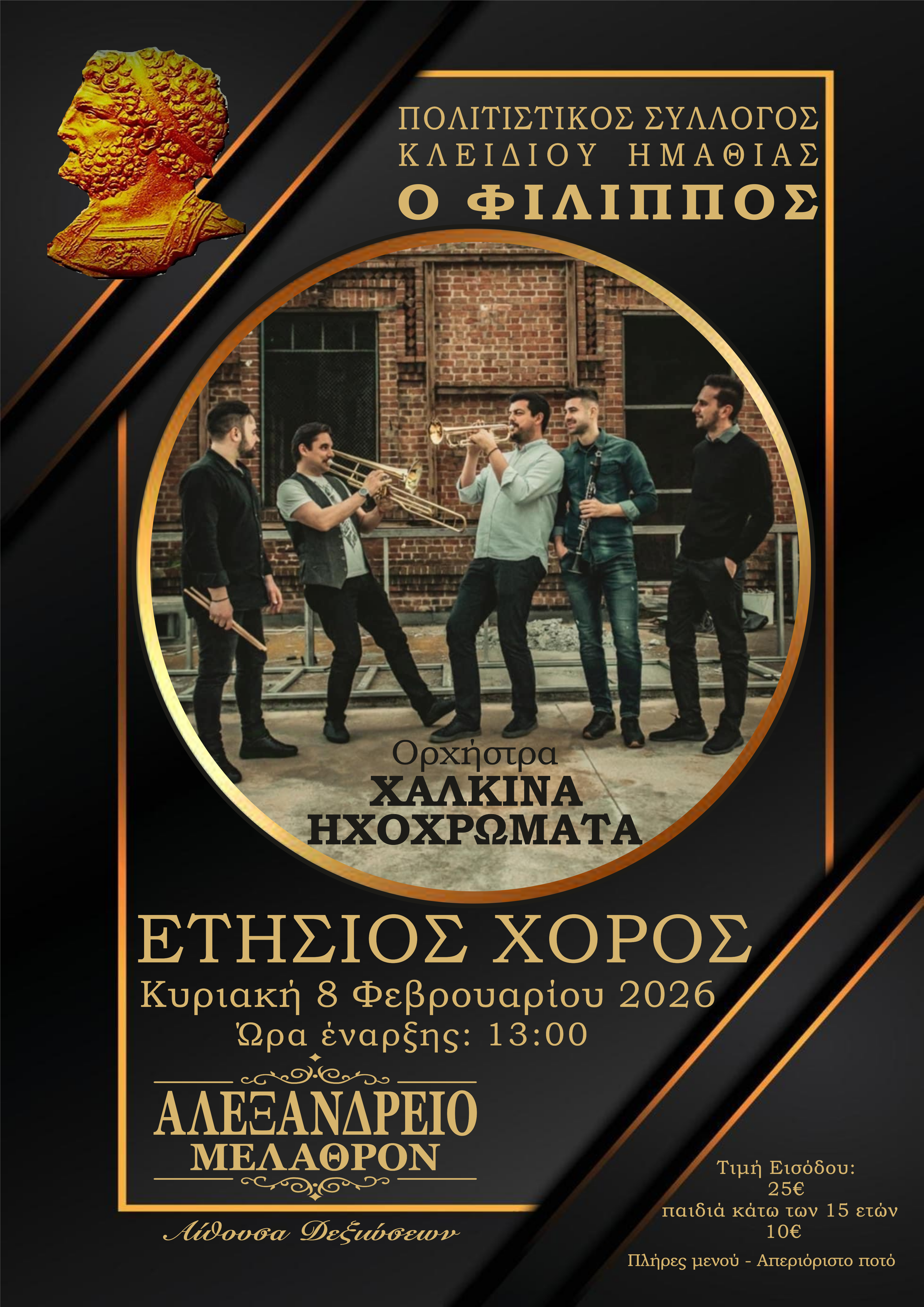 Τη διασκέδαση θα αναλάβει η ορχήστρα «Χάλκινα Ηχοχρώματα».