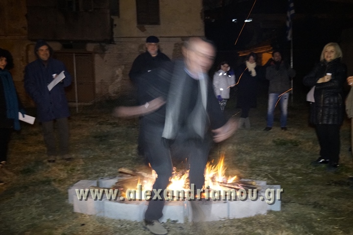 Ο δικηγόρος και λαογράφος- συγγραφέας Γιάννης Μοσχόπουλος ενημέρωσε τους παρευρισκόμενους για την ιστορία και την προέλευση του εθίμου.Παρευρέθηκαν ο βουλευτής του ΣΥΡΙΖΑ κ. Χρήστος Αντωνίου, ο Δκτης του Α.Τ. Αλεξάνδρειας κ. Κυριακίδης Νίκος ,ο λαογράφος κ. Γιώργος Ντελιόπουλος, μέλη και φίλοι της Εστίας.