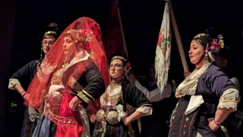 • Στο φράγμα του Αλιάκμονα, τρίτη στάση, η δάδα άλλαξε και πάλι χέρια, οι κοπέλες της «Εστίας Ρουμλουκιωτών Αλεξάνδρειας» με τις εντυπωσιακές φορεσιές που η παράδοση σχετίζει με τον Μεγαλέξανδρο χόρεψαν μοναδικά.