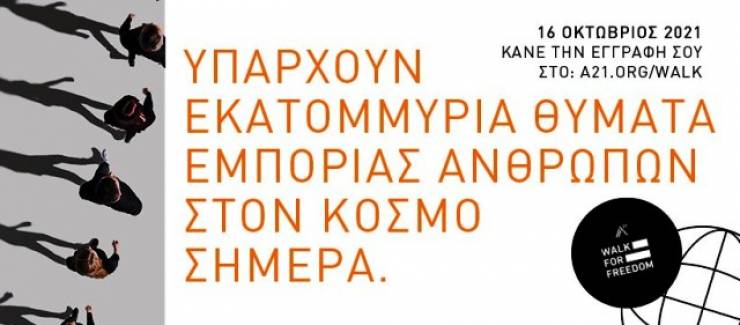 Στις 16 Οκτωβρίου 2021 εκατοντάδες άνθρωποι σε όλο τον κόσμο θα συμμετέχουν στο Walk For Freedom, μια πορεία που στόχο έχει την αφύπνιση και ενημέρωση του κοινού για την εμπορία ανθρώπων.