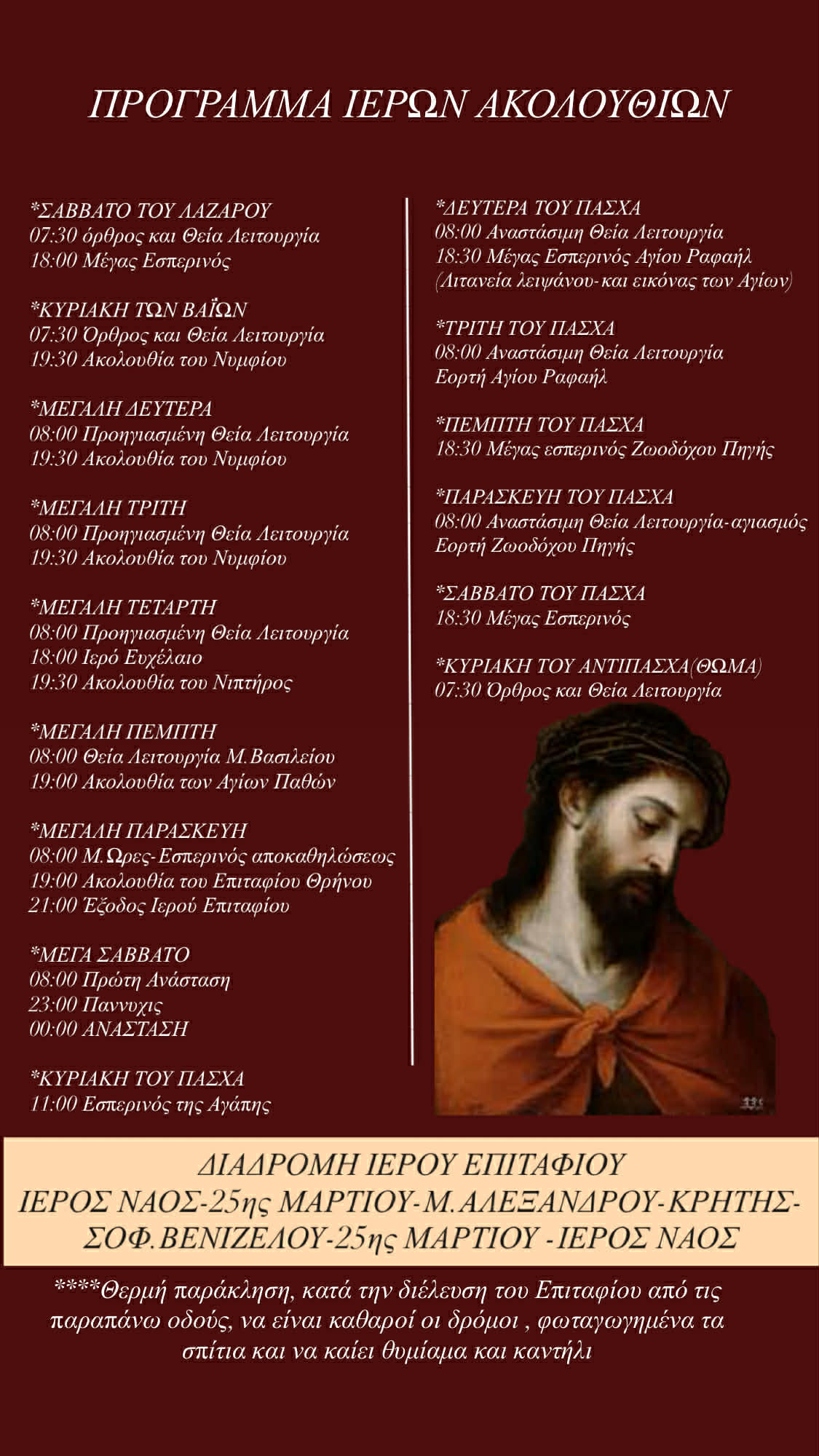 Ι.Ν.Αγίου Αλεξάνδρου Αλεξανδρείας: Πρόγραμμα Ιερών Ακολουθιών - Μεγάλη Εβδομάδα & Αγιον Πάσχα 2026