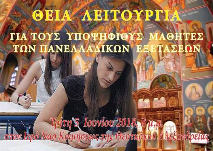 Παναγία Αλεξάνδρειας:Θεία Λειτουργία Πανελλαδικών και Μαθητικών Εξετάσεων