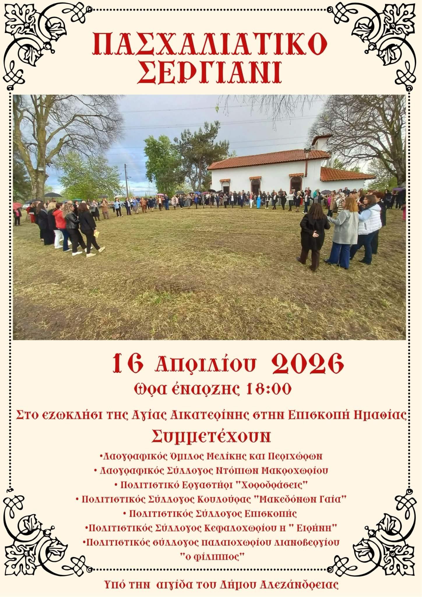 Σας προσκαλούμε για ακόμη μια χρονιά στο Πασχαλιατικο Σεργιάνι, ένα παλιό έθιμο του Ρουμλουκιου στον κύκλο των εθίμων και των τελετουργιών του Πάσχα και της Άνοιξης.