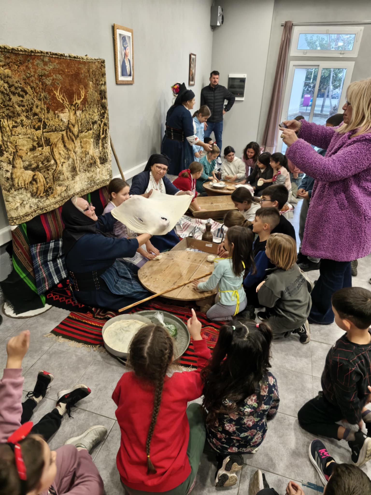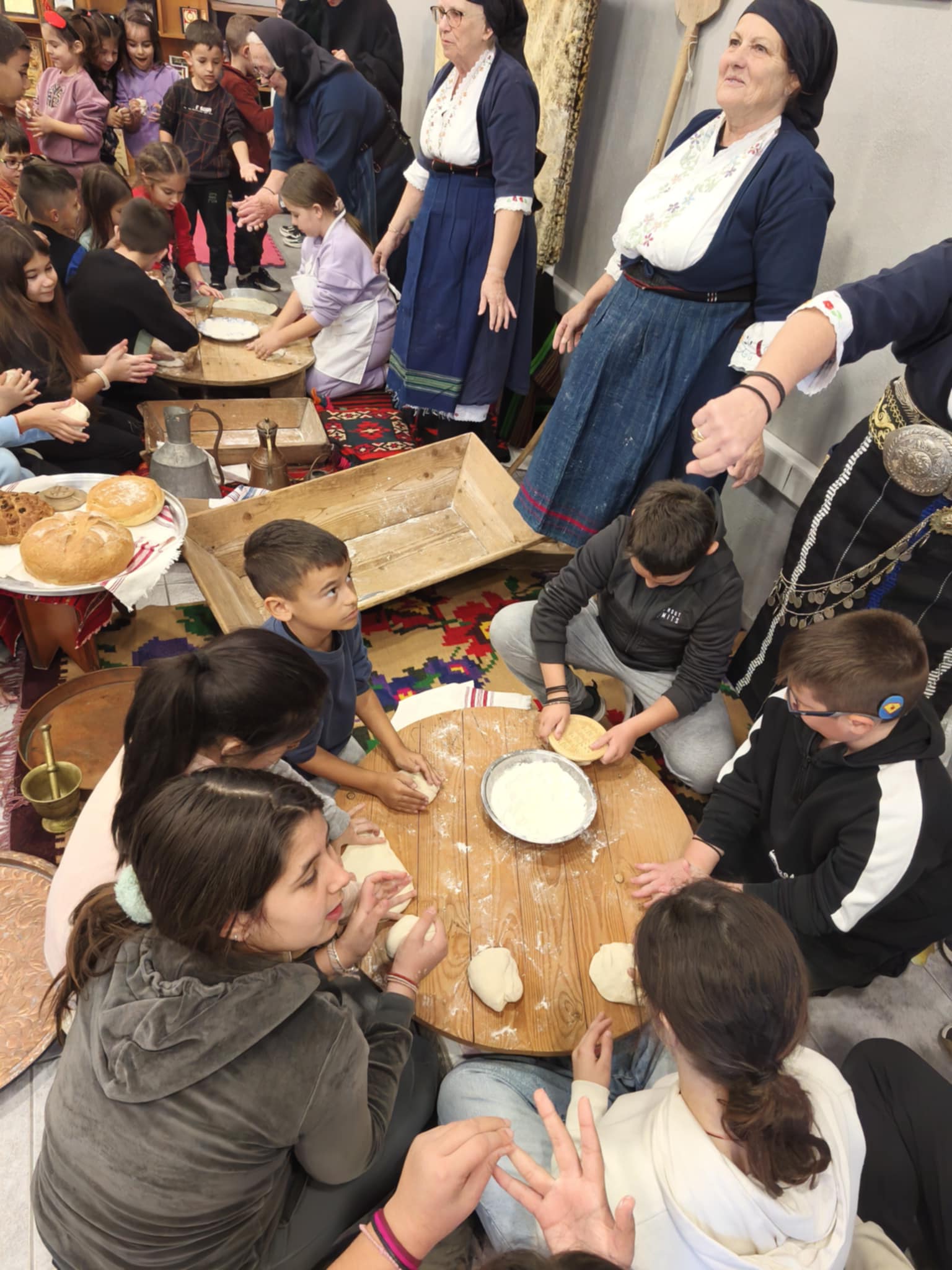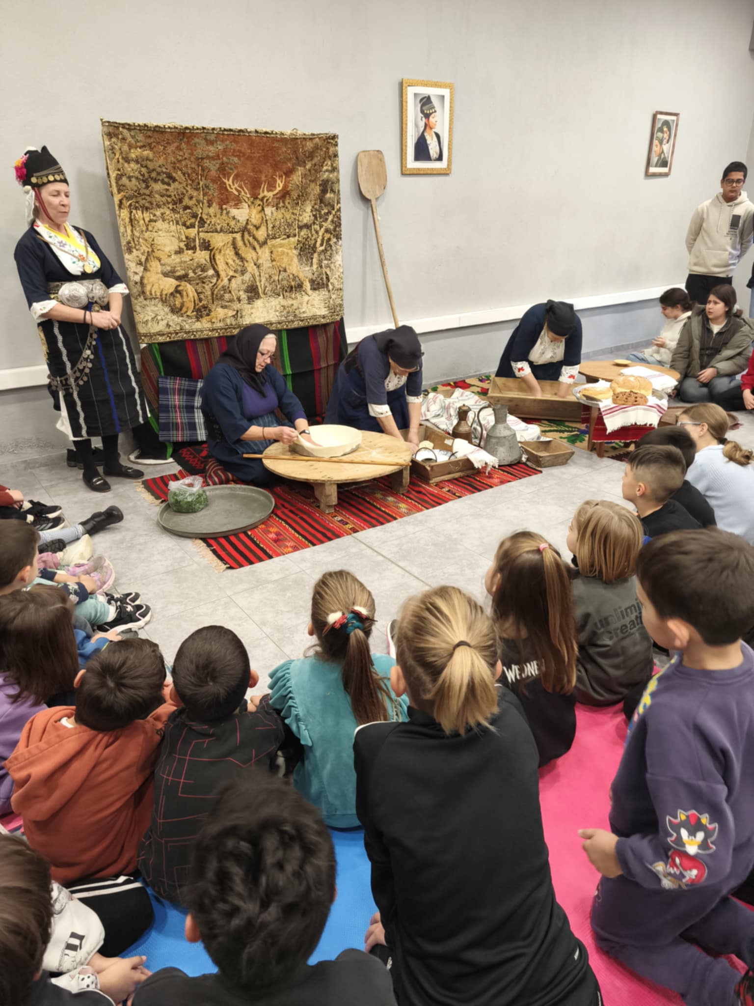 Γυναίκες του χωριού, με εμπειρία και μεράκι, άνοιξαν τις πόρτες της γνώσης και της παράδοσης, μυώντας τα παιδιά σε παλιές τεχνικές ζυμώματος και υφαντικής. Με υπομονή και χαμόγελο τους έδειξαν πώς κάποτε υφαίνονταν τα ρούχα και πώς ετοιμαζόταν το ψωμί, όταν όλα γίνονταν με τα χέρια και τον κόπο των ανθρώπων. Οι μαθητές παρακολουθούσαν με απόλυτο ενδιαφέρον, «ζωγράφιζαν» με τα μάτια τους κάθε λεπτομέρεια, άκουγαν προσεκτικά κι έμοιαζαν να ταξιδεύουν σε μια άλλη εποχή.