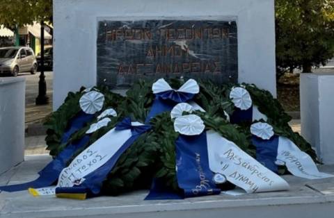 - Ώρα 08:00: Επίσημη έπαρση της Σημαίας στο χώρο του Ηρώου της πόλης της Αλεξάνδρειας, παρουσία ομάδας οπλιτών μέριμνας Κ.Ε.Α.Σ. Απόδοση τιμών στο Ηρώο και στον Ιερό Ναό Κοιμήσεως Θεοτόκου Αλεξάνδρειας από τη Φιλαρμονική και από Διμοιρία της Κ.Ε.Α.Σ